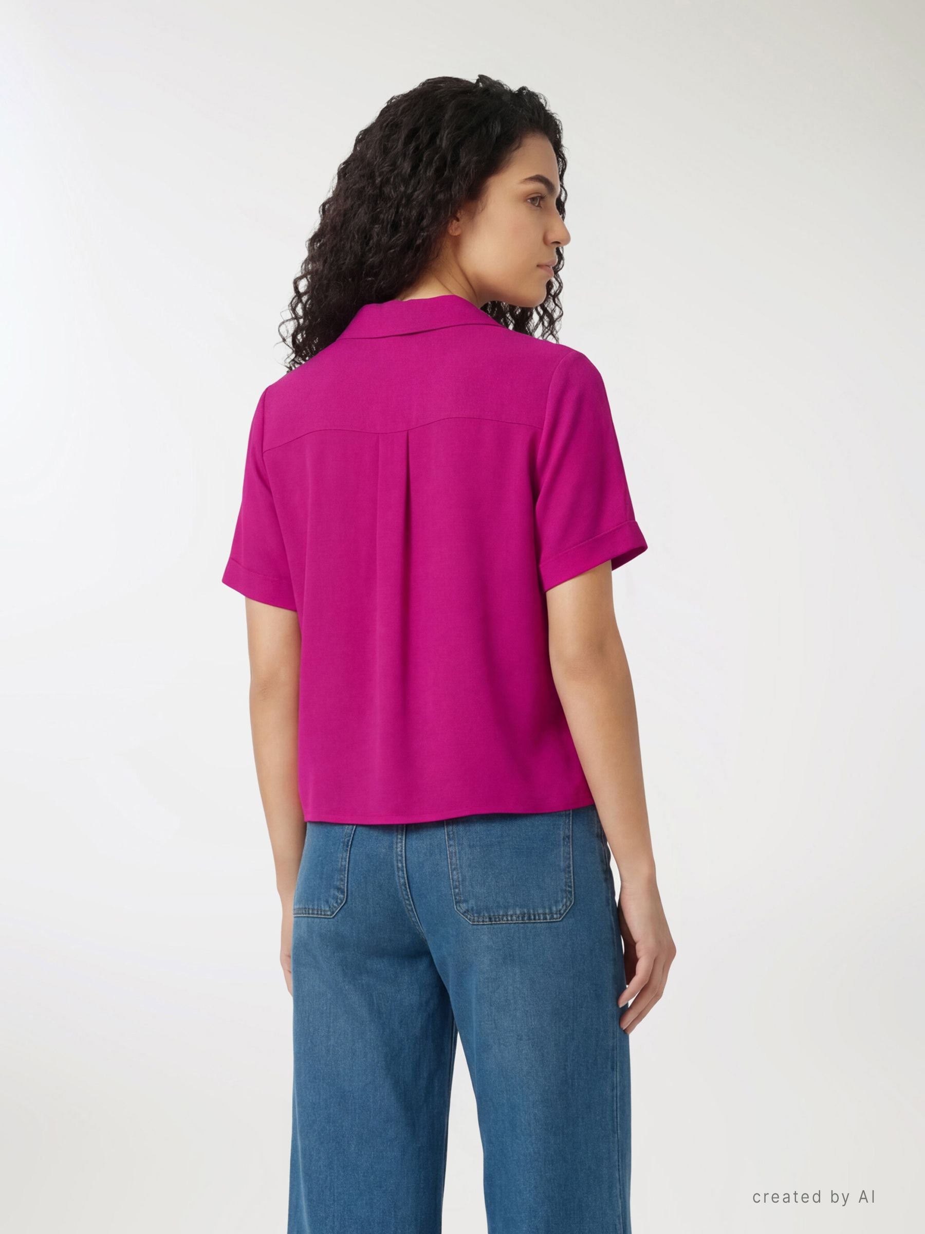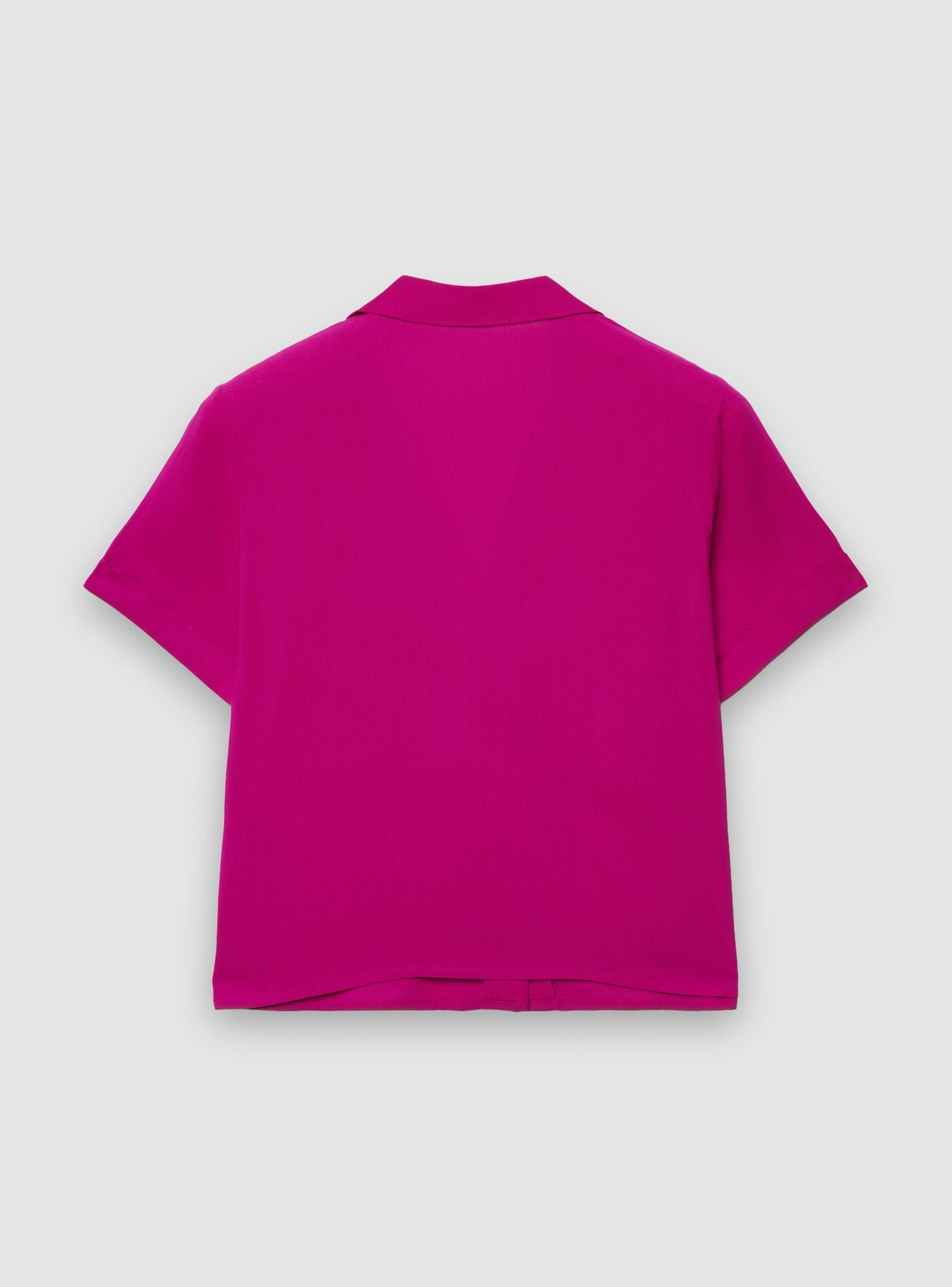 Ženska jednobojna košulja sa kratkim rukavima i okovratnikom sa reverom. Prednje kopčanje na dugmad, idealna za ležerne ili kancelarijske kombinacije sa farmerkama, krojenim pantalonama ili suknjama. Rukavi sa preklopom i regularan kroj za svakodnevnu udobnost. Savršena za slojevito nošenje ispod blejzera ili preko topa, ističe minimalistički izgled zahvaljujući čistom dizajnu i jednostavnoj silueti.Detalji