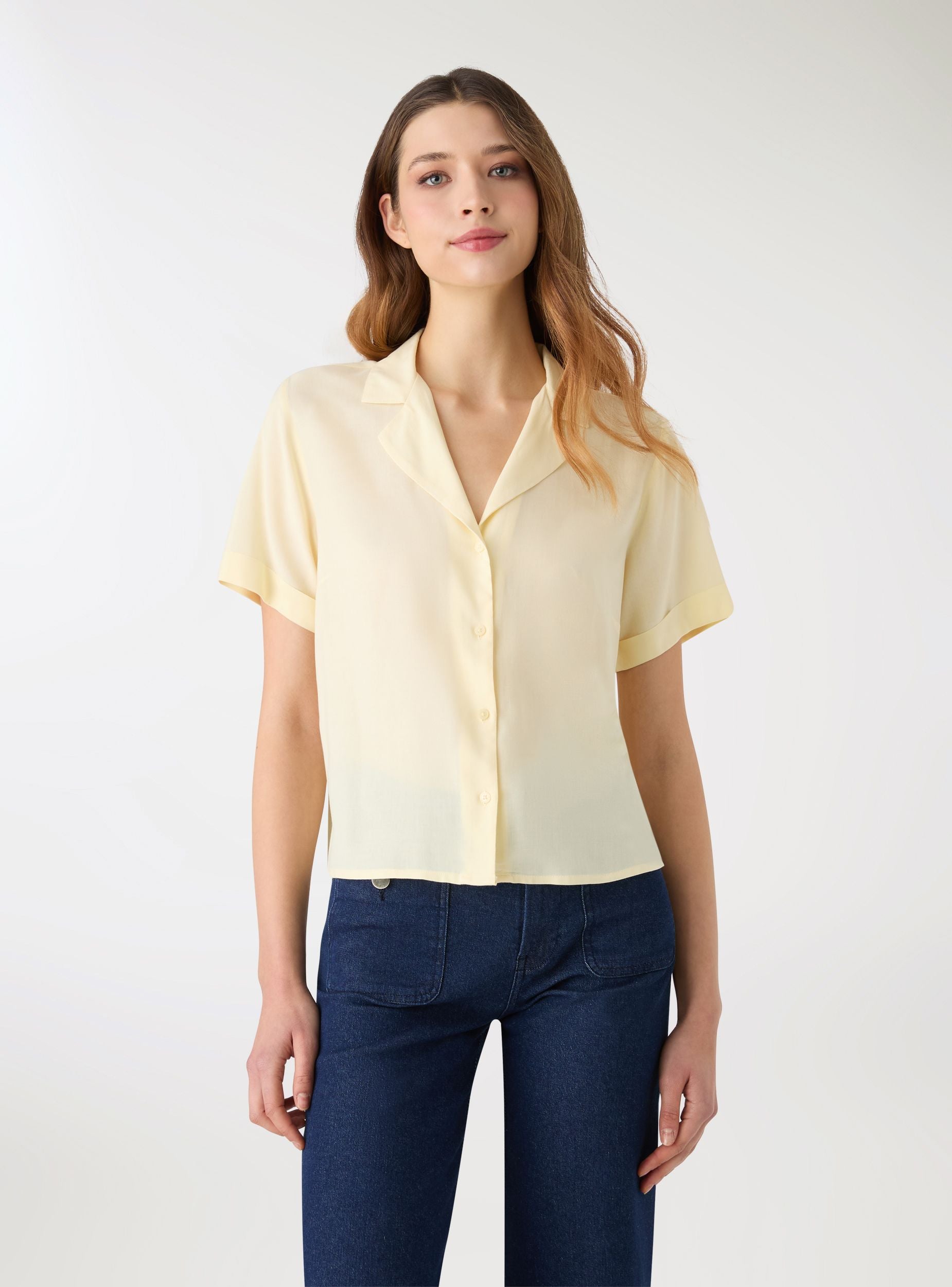 Ženska košulja u jednobojnoj varijanti sa kratkim rukavima i reverom. Prednje kopčanje na dugmad, idealna za ležerne ili kancelarijske kombinacije sa farmerkama, krojenim pantalonama ili suknjama. Rukavi sa preklopom i regularan kroj za svakodnevnu udobnost. Savršena za slojevito nošenje ispod blejzera ili preko topa, ističe minimalistički izgled zahvaljujući čistom dizajnu i jednostavnoj silueti.Detalji