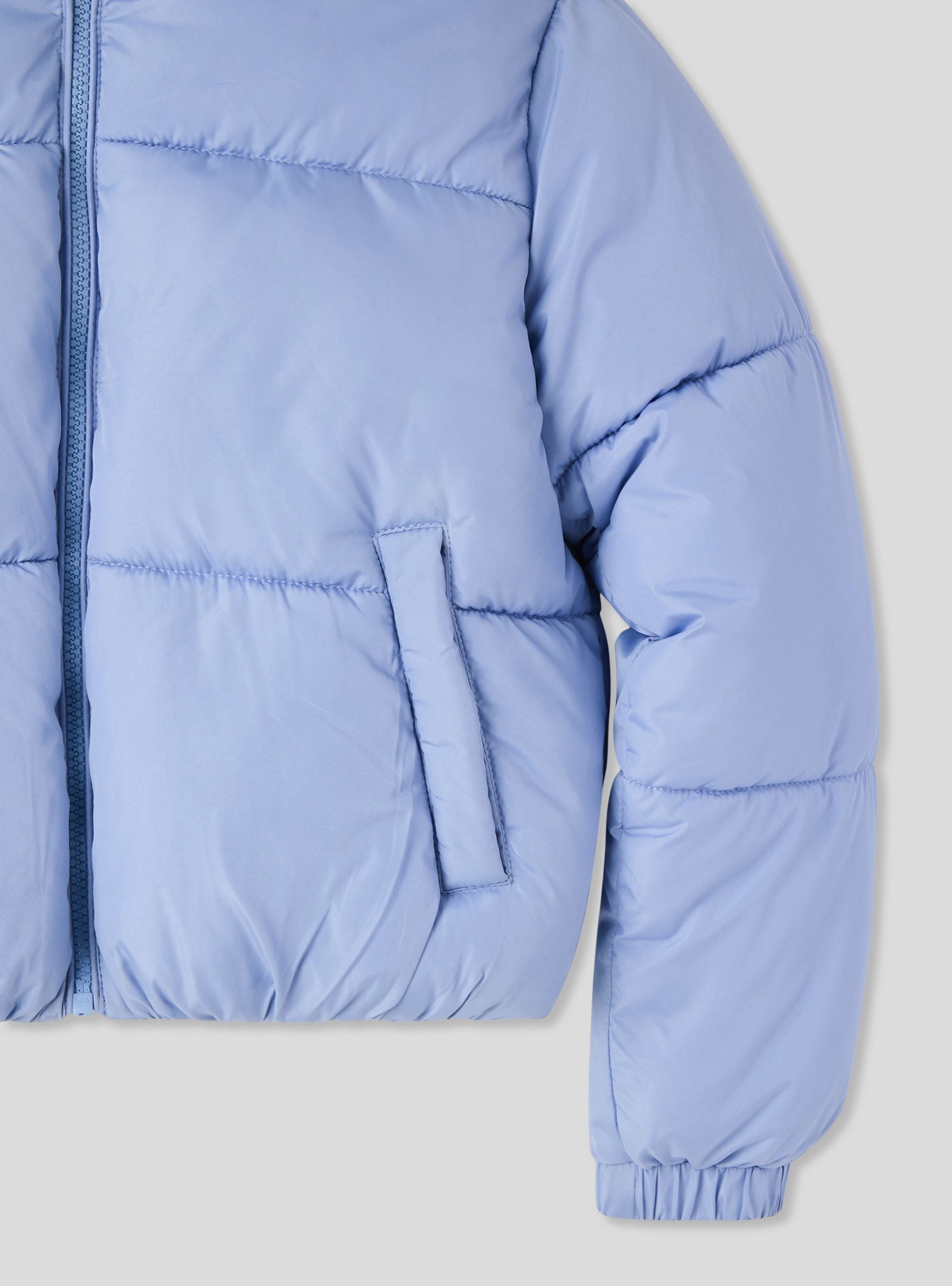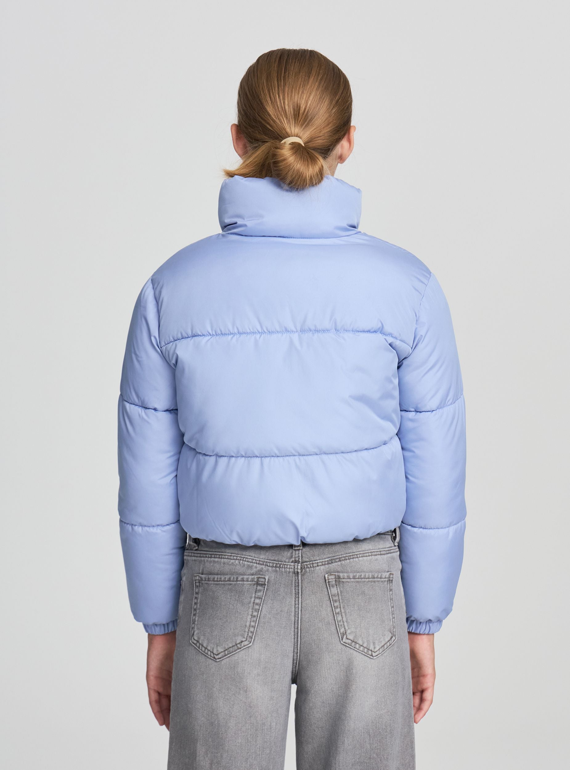Dečija jakna sa punjenjem u jednobojnoj boji, idealna za hladne dane, karakteriše je krojena silueta. Dizajn ima visoki ovratnik bez kapuljače, zatvaranje na zip i bočne kose džepove, pružajući praktičnost i udobnost. Savršena za školu ili slobodno vreme, lako se kombinuje sa farmerkama ili sportskim pantalonama za svestran i savremen izgled.Detalji