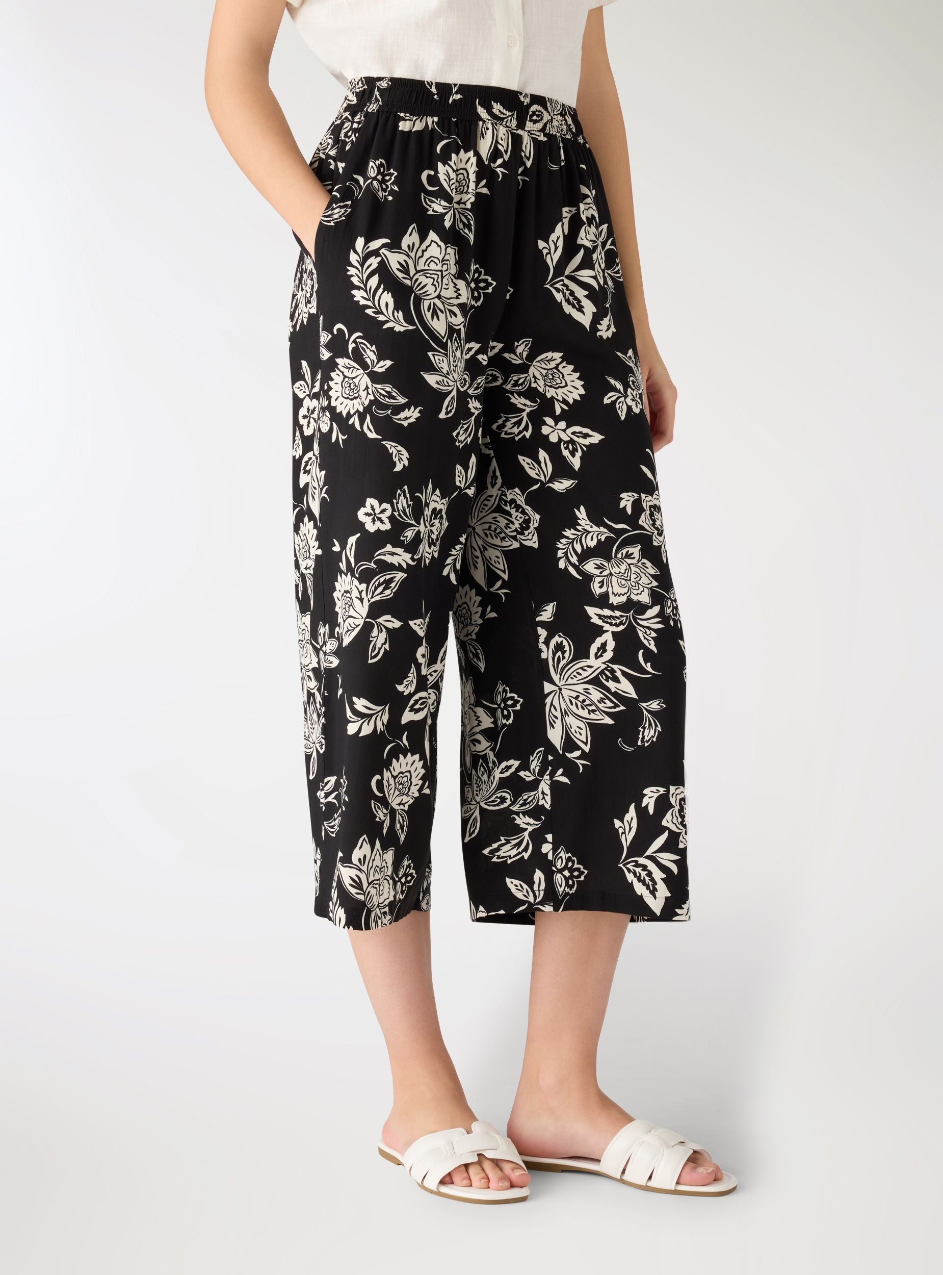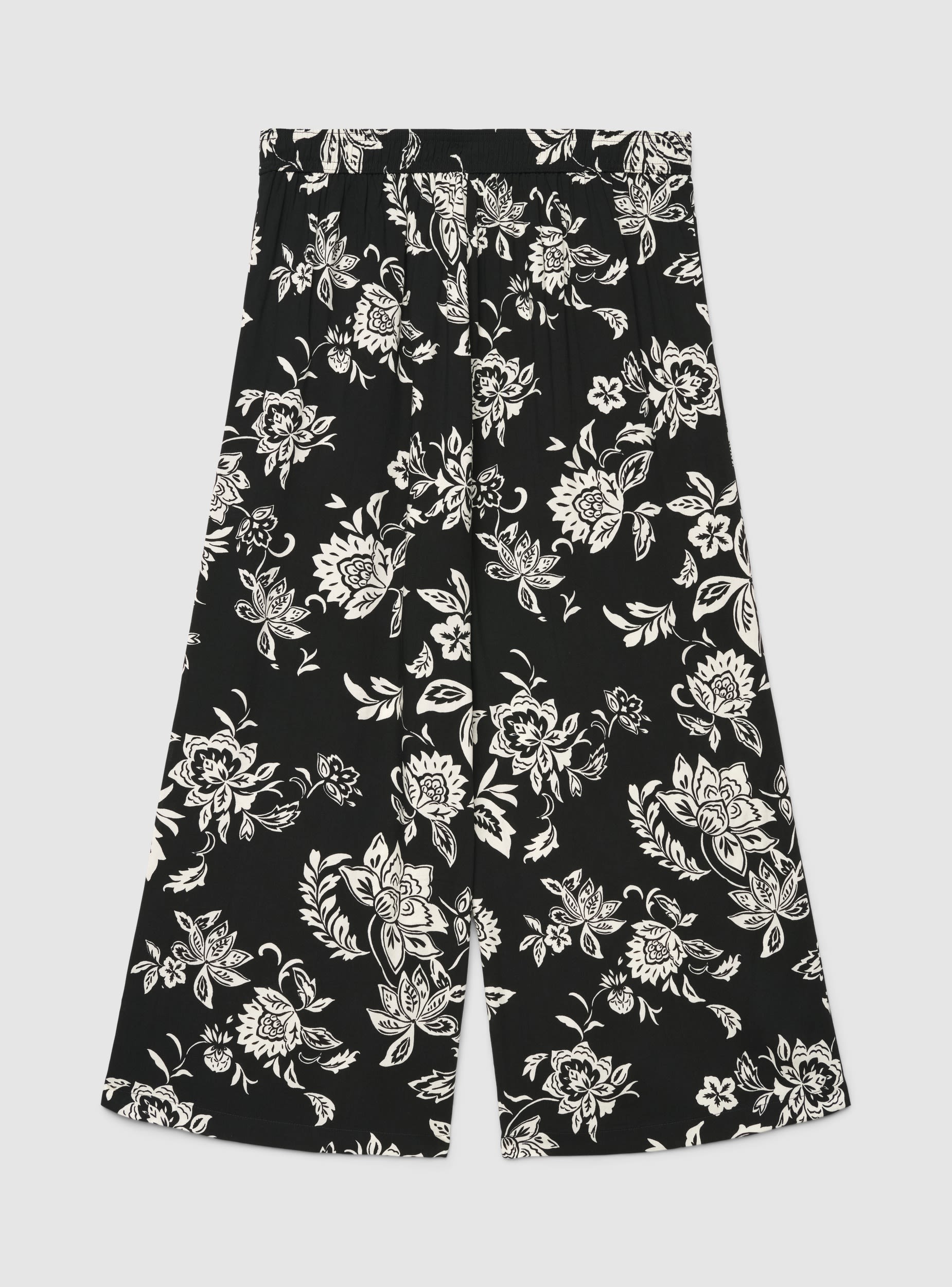 Ženske pantalone sa upečatljivim cvetnim printom, idealne za dnevne kombinacije i odmor. Visoki struk sa elastičnom trakom pruža udobnost i praktičan kroj, dok široke nogavice ističu siluetu i daju pokretljivost. Model koji se lako kombinuje sa uskim topovima ili laganim košuljama i sandalama za uredan izgled.Detalji