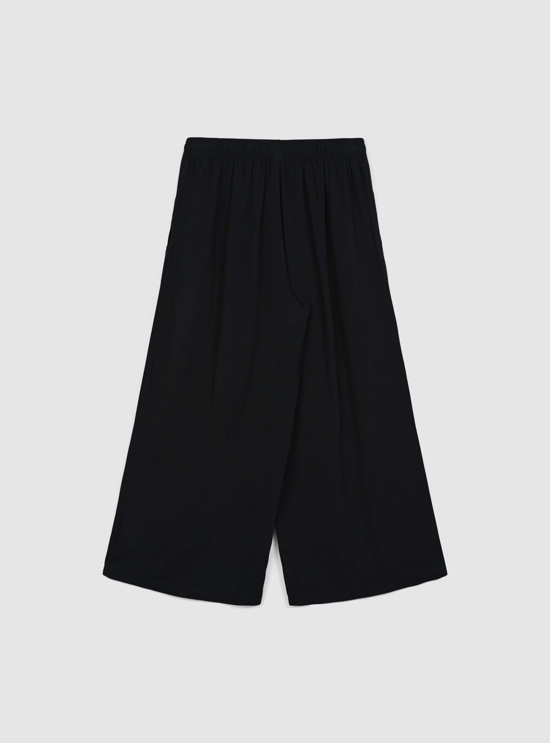 Pantaloni da donna caratterizzati da un design tinta unita con linea ampia a palazzo. La lunghezza crop dona un tocco moderno e versatile, perfetto per abbinamenti casual o eleganti. Sono dotati di tasche laterali pratiche e funzionali, oltre a una comoda coulisse in vita che permette di regolare la vestibilità in modo ottimale. L'elastico in vita assicura comfort e flessibilità durante l'uso, rendendo questi pantaloni ideali per chi cerca uno stile sofisticato senza rinunciare alla comodità.Detalji
