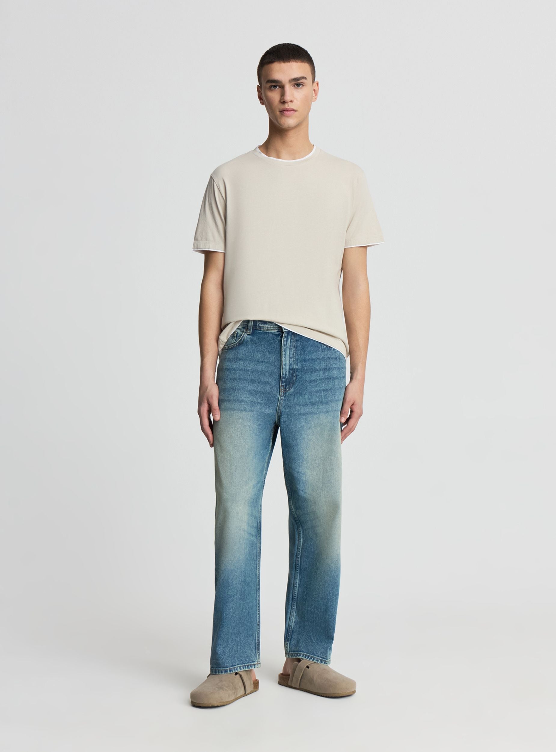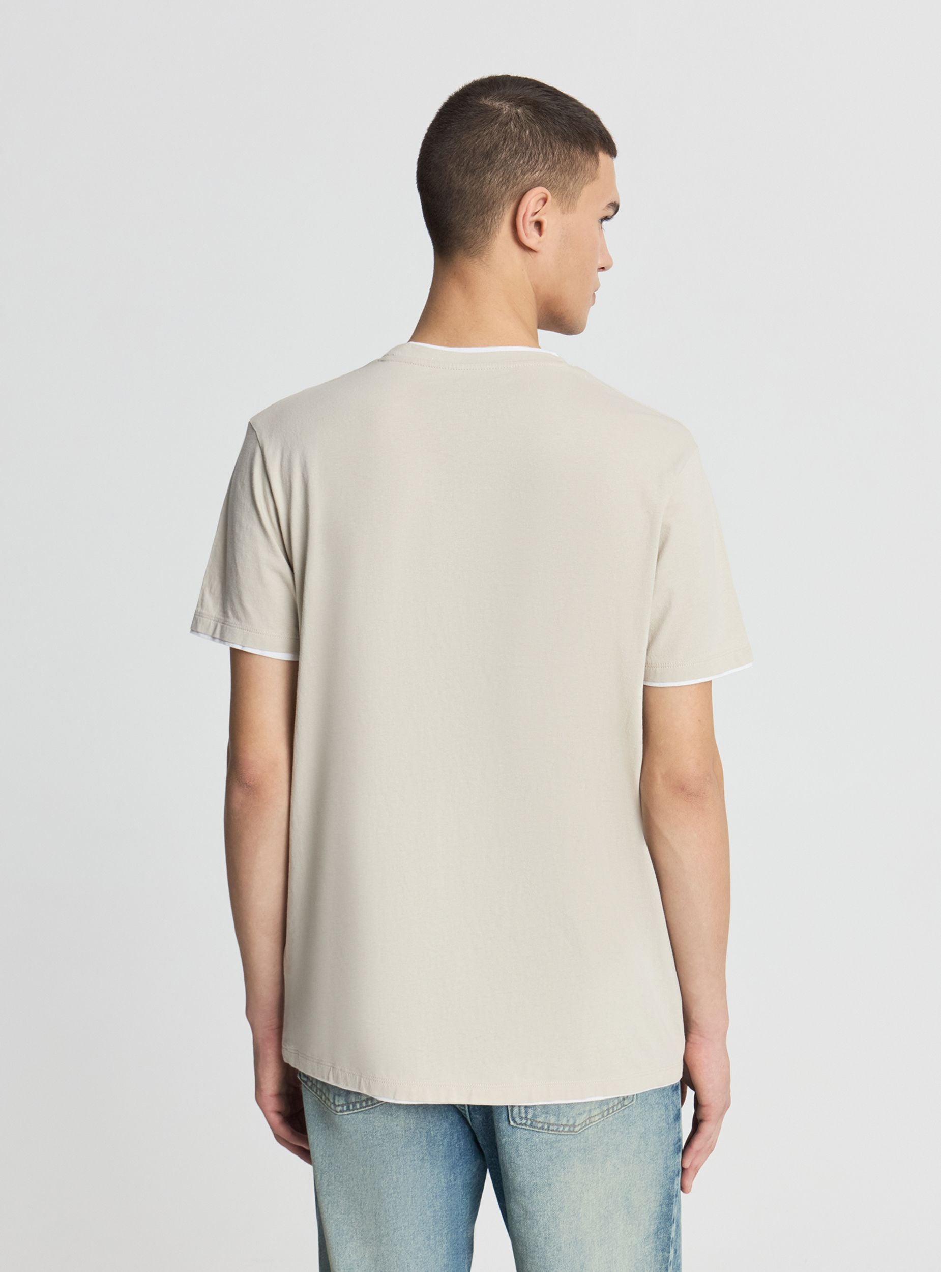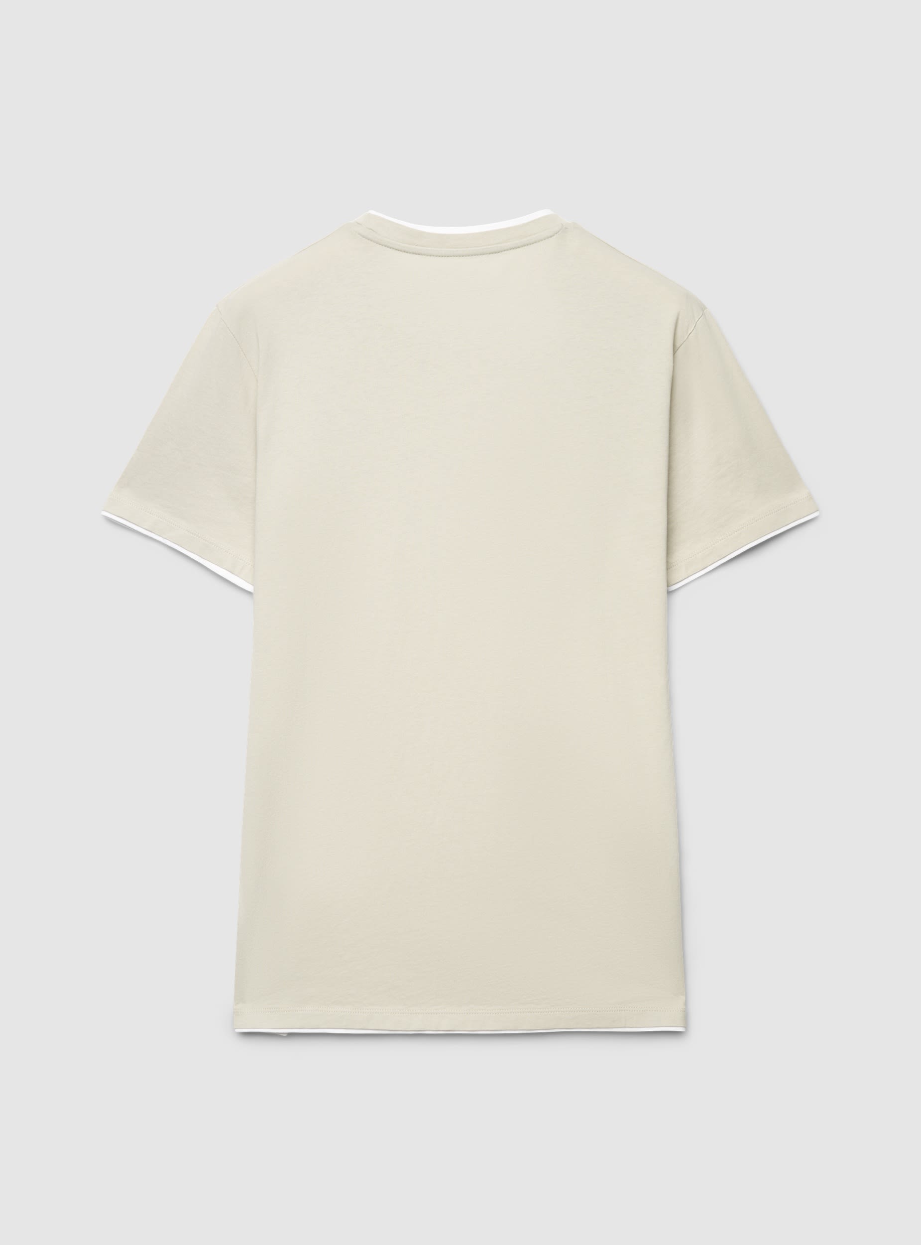 Muška jednobojna majica sa okruglim izrezom i kratkim rukavima, ukrašena kontrastnim ivicama na izrezu, donjem delu rukava i rubu za diskretan grafički detalj. Regular kroj, lako se kombinuje sa farmerkama ili šortsevima za slobodno vreme, ali i ispod otvorene košulje za urbani izgled. Esencijalan dizajn, idealan za svaki dan zahvaljujući čistoj liniji i prirodnom komforu.Detalji