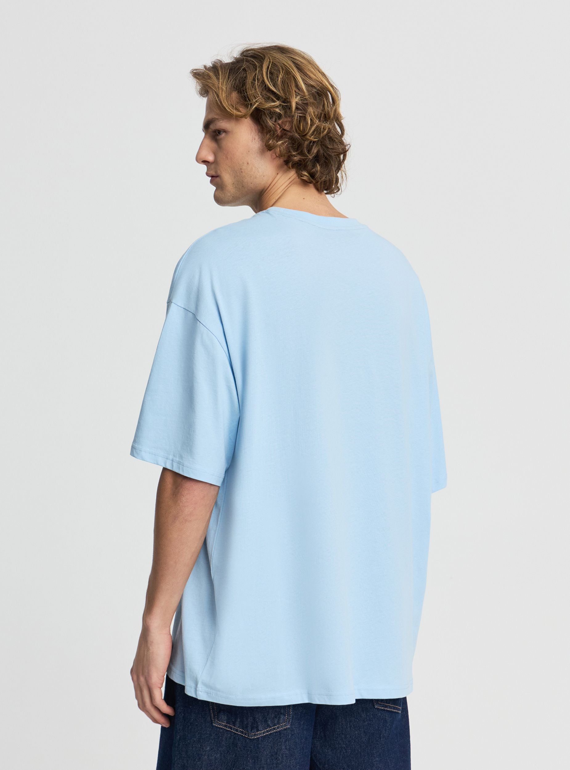 Muška jednobojna majica širokog kroja, dizajnirana za street i casual stil. Ima okrugli izrez i kratke rukave sa spuštenim ramenima za širok i udoban kroj. Lako se kombinuje sa farmerkama, bermudama ili trenerkama za osnovne i savremene kombinacije, idealna i za slojevito nošenje ispod košulja i laganih jakni.Detalji