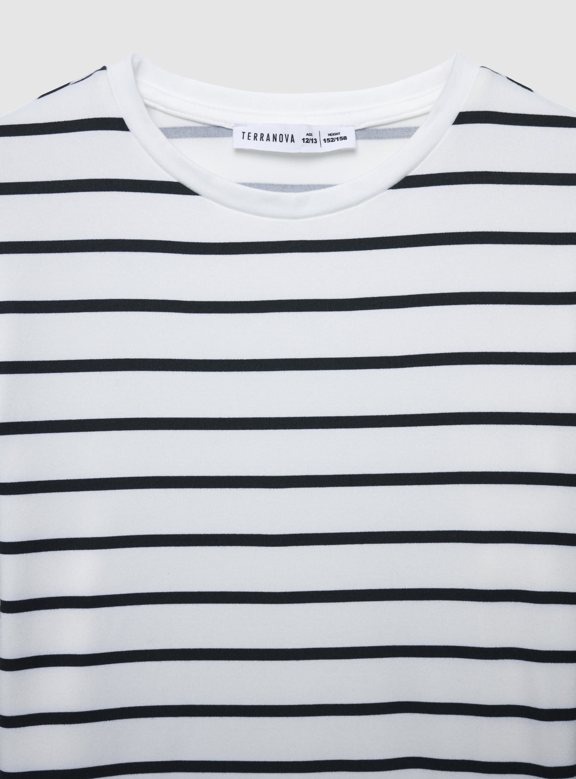 Dečija majica na pruge sa dugim rukavima i volanima na ramenima. Ima dizajn sa horizontalnim prugama koji dodaje pomorski stil. Dugi rukavi je čine idealnom za hladnije dane, dok regularni kroj obezbeđuje udobno pristajanje. Savršena za ležerne kombinacije sa farmerkama ili sportskim pantalonama, pogodna za školu ili slobodno vreme.Detalji