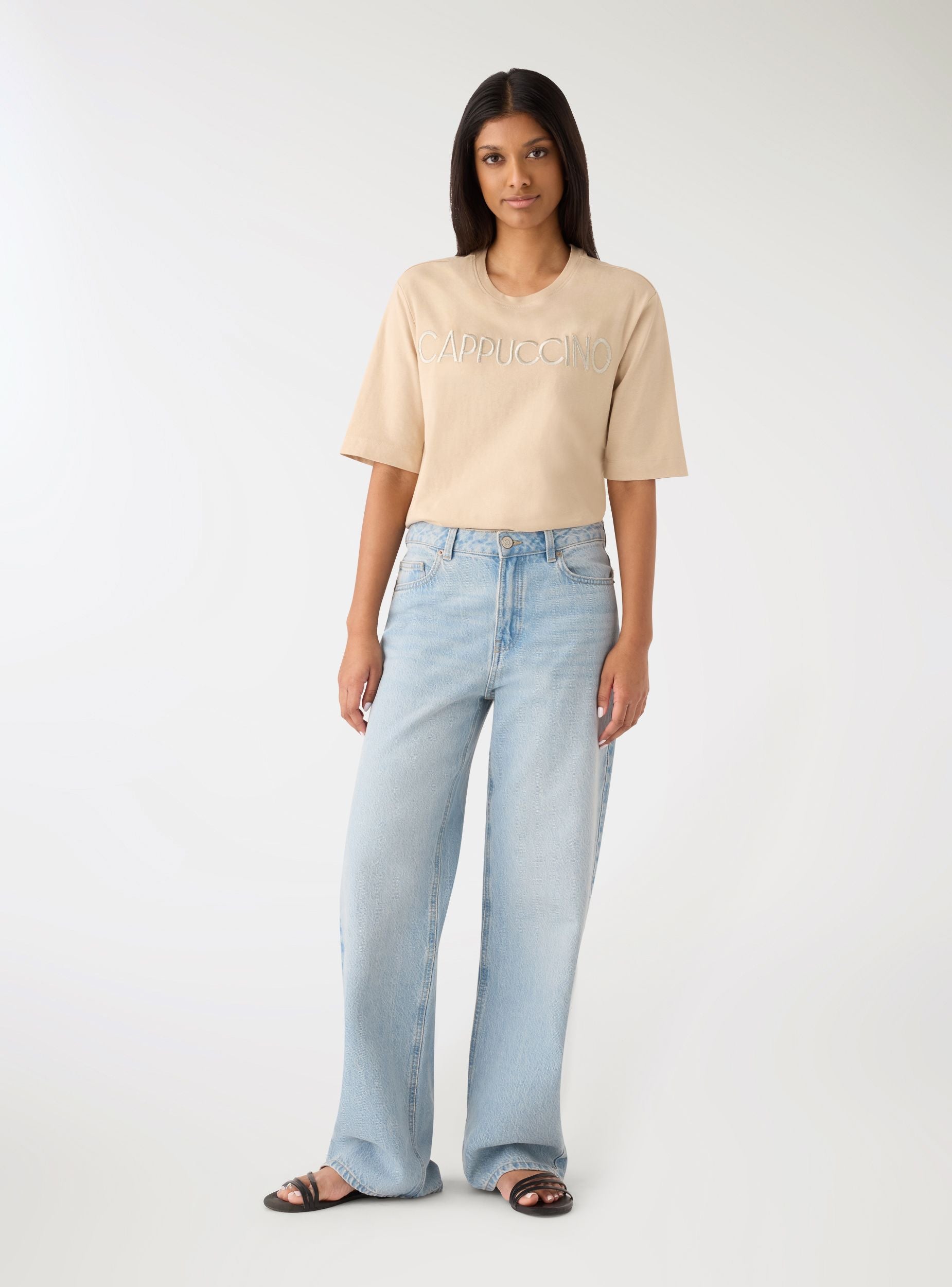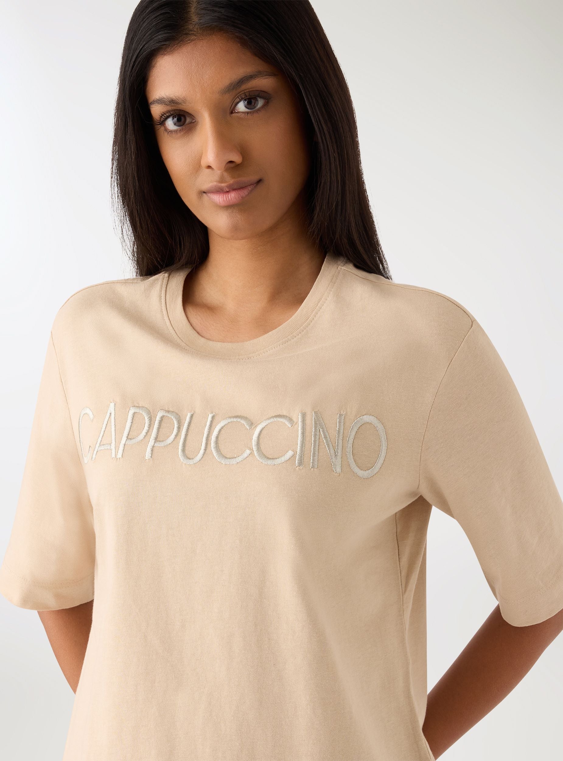 Ženska jednobojna majica sa vezom na prednjoj strani. Model sa okruglim izrezom i kratkim rukavima, regularnog kroja koji pruža svakodnevnu udobnost. Savršena uz farmerke, midi suknje ili šortse za ležeran izgled. Vezeni detalj daje poseban pečat. Lako se kombinuje sa otvorenom košuljom ili laganim sakoom.Detalji