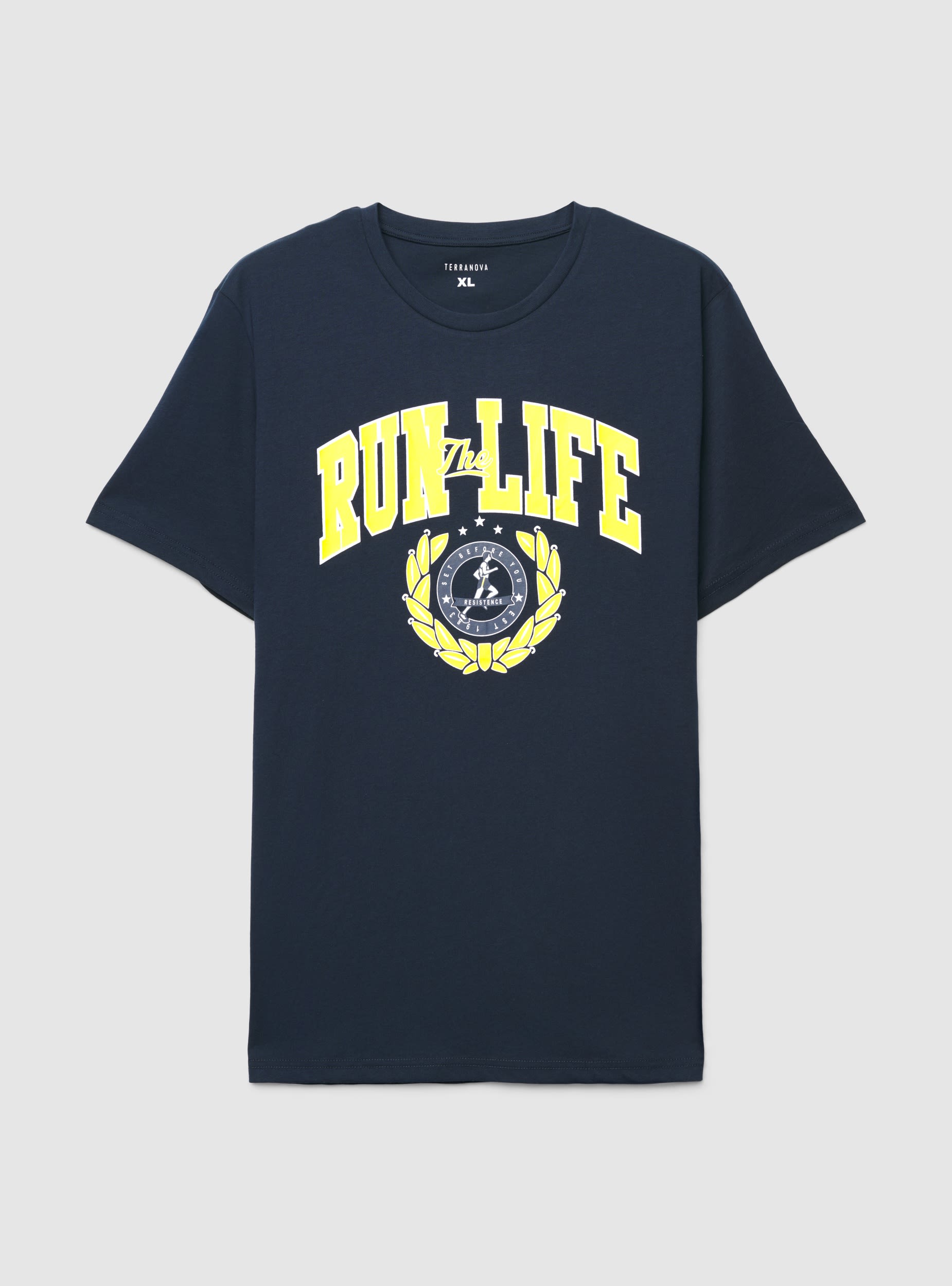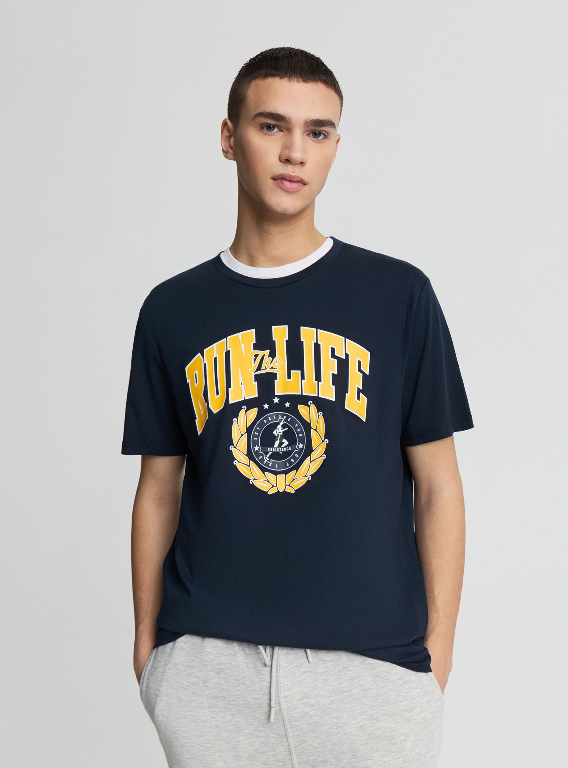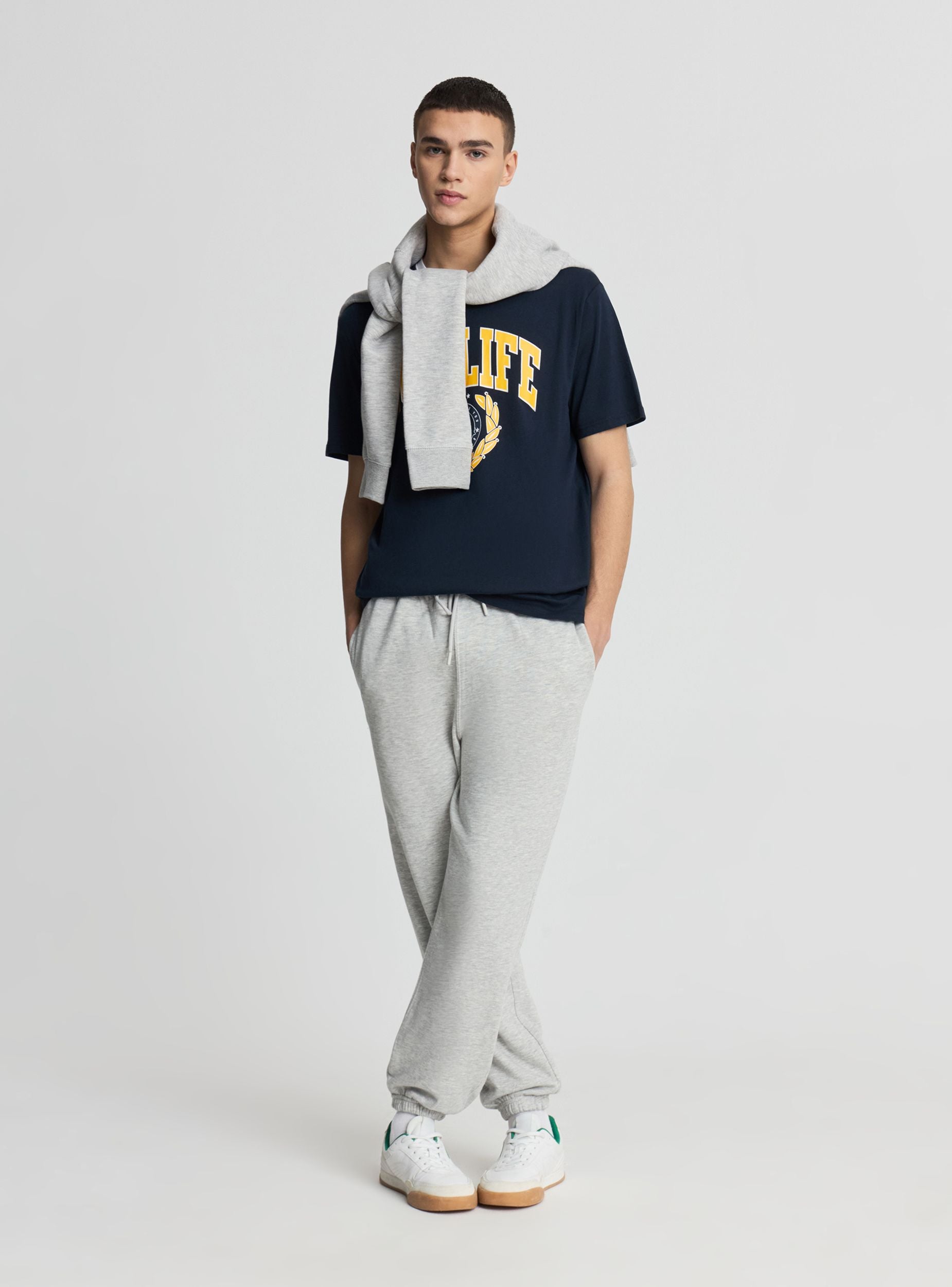 Muška majica kratkih rukava sa okruglim izrezom i regularnim krojem. Prednja štampa u koledž stilu sa natpisom i centralnim grbom daje karakter svakodnevnim kombinacijama. Idealna je uz džins, chino pantalone ili bermude i patike, a može se nositi i ispod otvorene košulje ili lake jakne za urbani izgled.Detalji