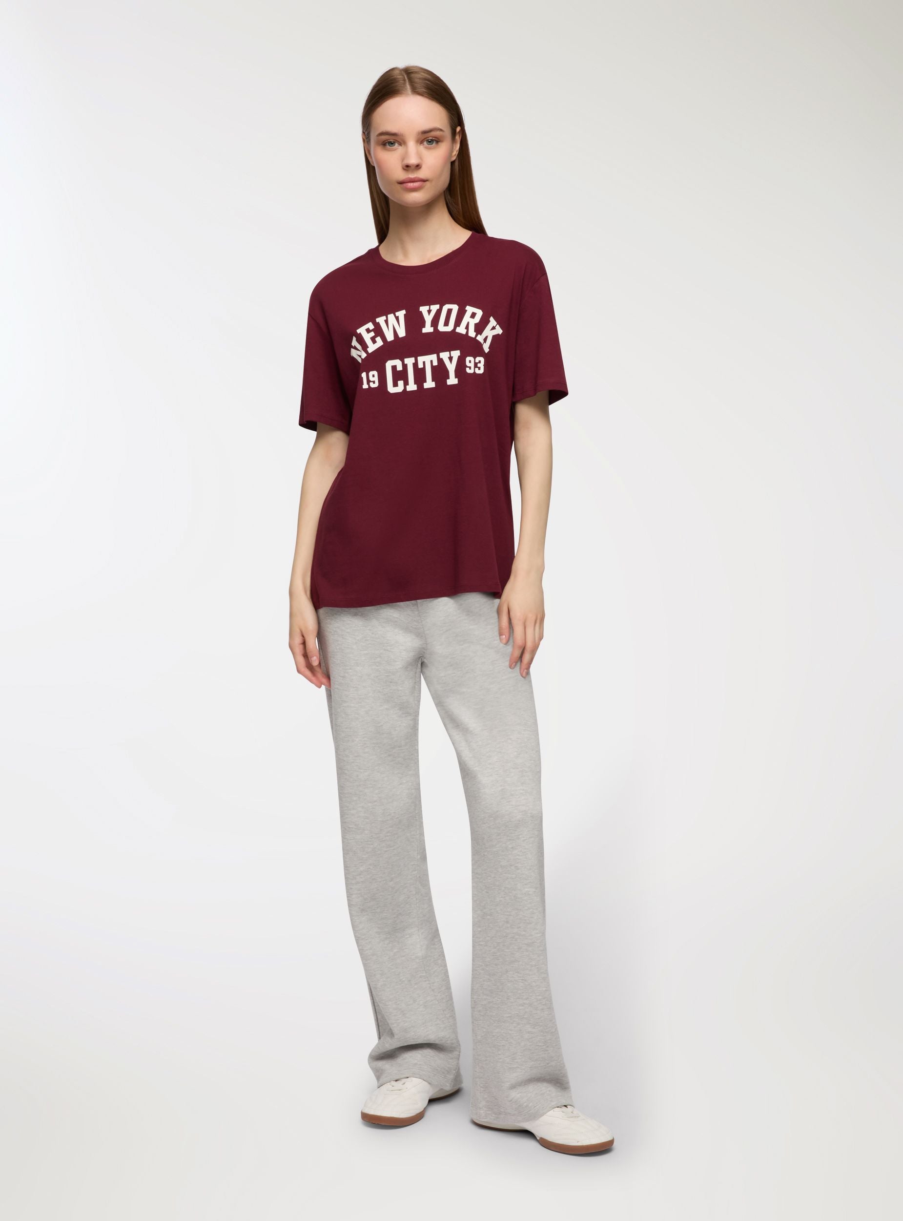 Ženska majica širokog kroja, idealna za ležeran i opušten izgled. Savršena za slobodno vreme, lako se kombinuje sa farmerkama ili šortsevima za udoban i moderan outfit. Dizajn sa college štampom dodaje dašak urbanog stila, čineći je pogodnom za različite neformalne prilike.Detalji