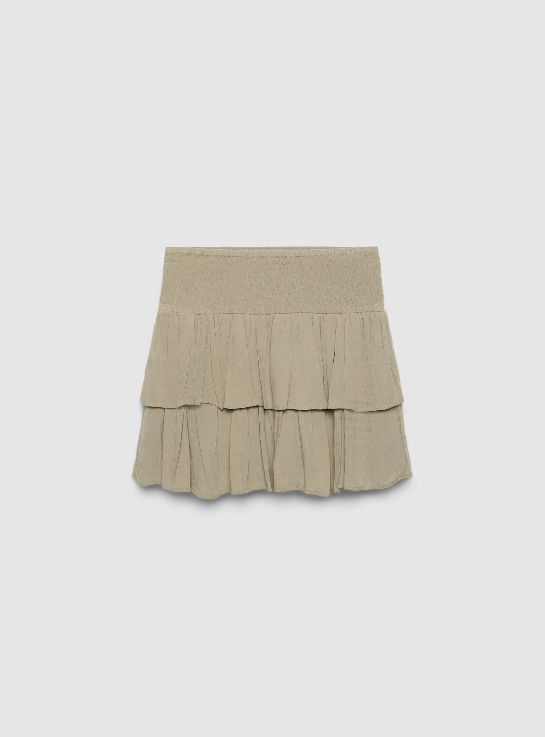 Kratka ženska suknja u jednoj boji, sa visokim naboranim i elastičnim strukom za udobno pristajanje. Dizajn sa karnerima stvara volumen i pokret, idealna uz uske topove ili mekane košulje, kao i sandale ili patike. Suženi kroj bez zatvaranja, savršen za dnevne i ležerne kombinacije.Detalji
