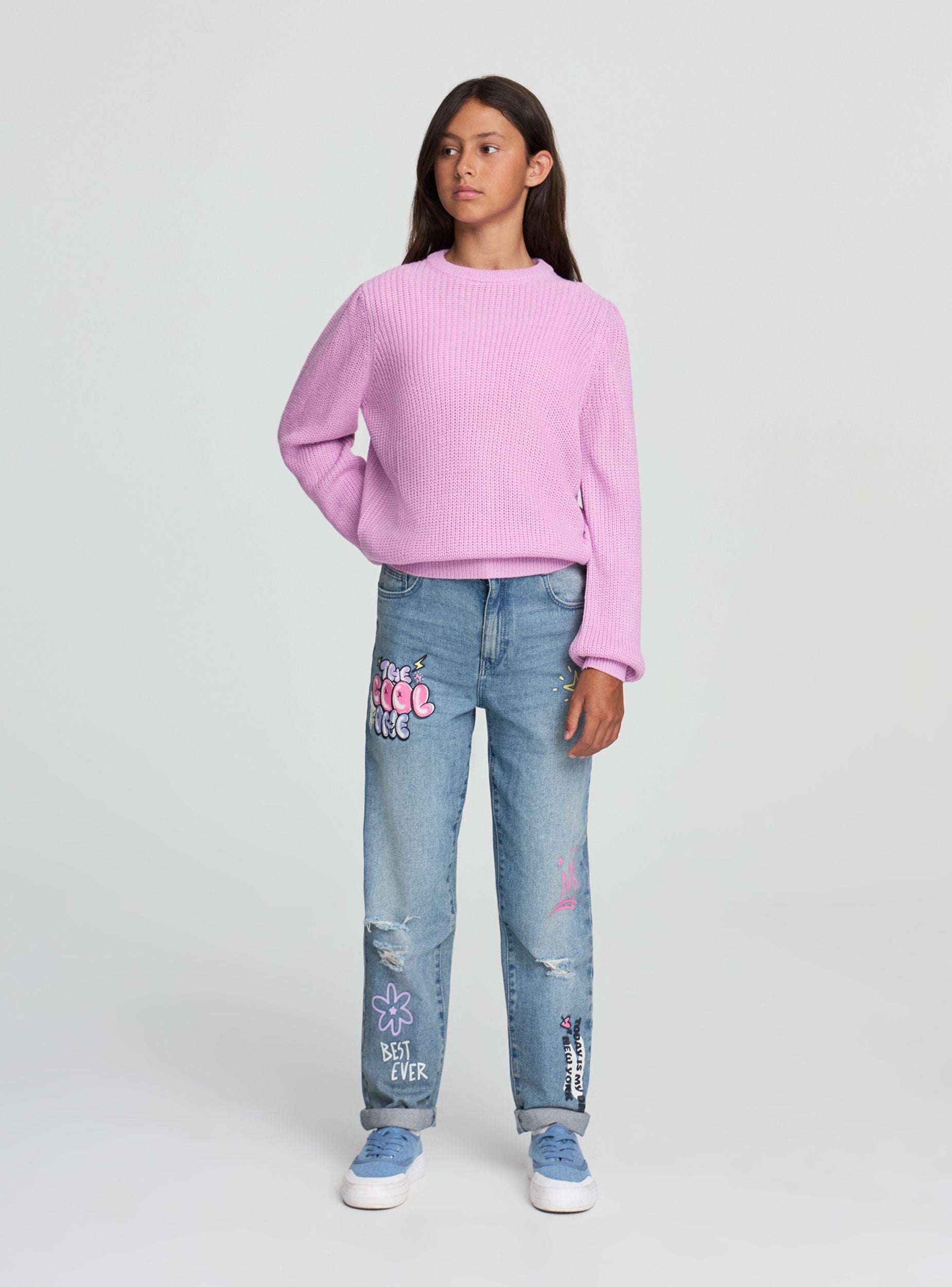 Farmerke za devojčice sa živopisnim printovima i poderanim detaljima, idealne za ležeran i moderan izgled. Ove duge farmerke nude udobno pristajanje i savršene su za kombinovanje sa majicama i patikama. Imaju 5 praktičnih džepova i zatvaranje na dugme i rajsferšlus, sa svestranim dizajnom pogodnim za slobodno vreme i izlaske sa prijateljima.Detalji