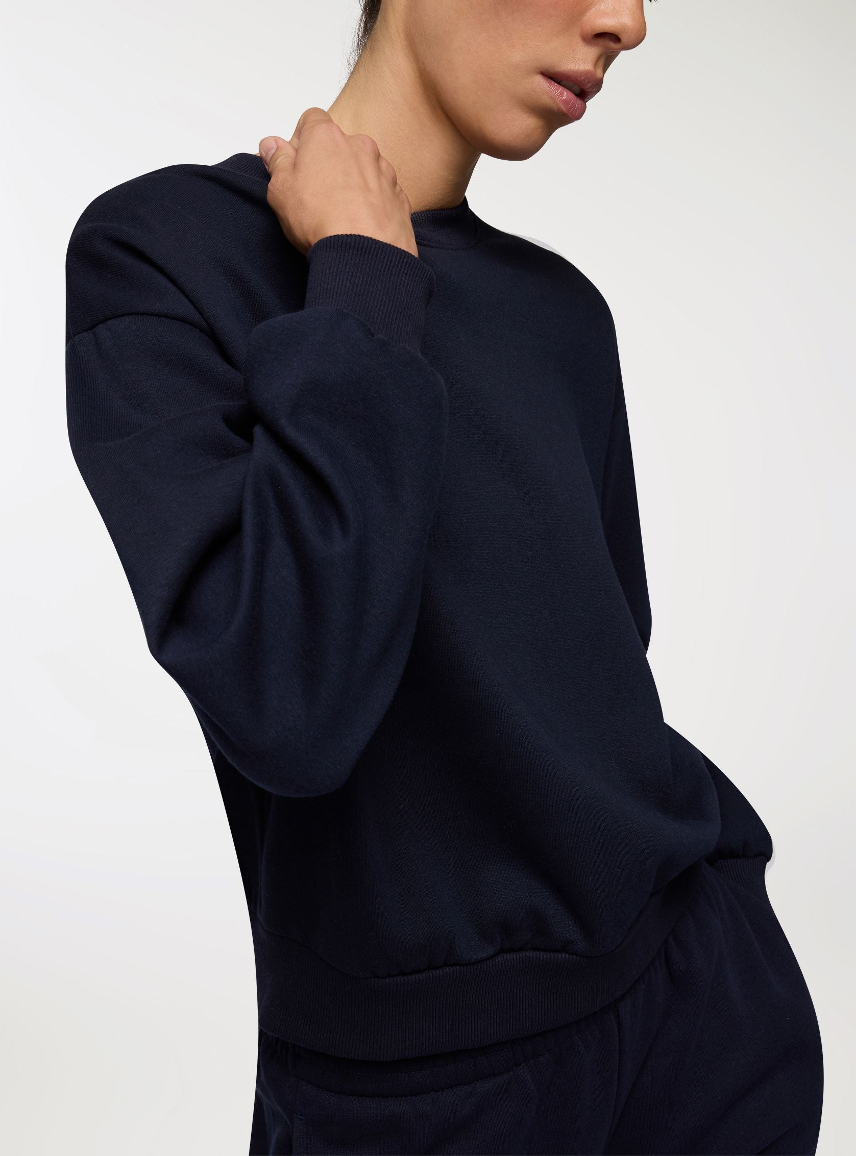 Ženska teška dukserica savršena za hladnije dane. Model u jednobojnoj boji bez kapuljače i bez rajsferšlusa, sa dugim rukavima i rebrastim završecima na vratu, zapešćima i dnu. Osnovni i svestrani komad, idealan za nošenje u slobodno vreme ili za opušten i udoban izgled.Detalji