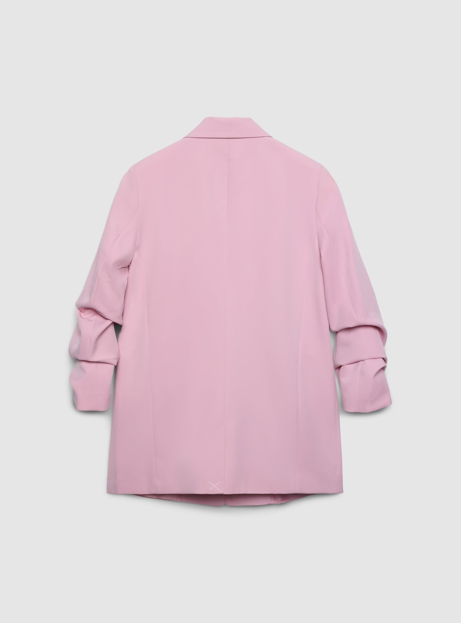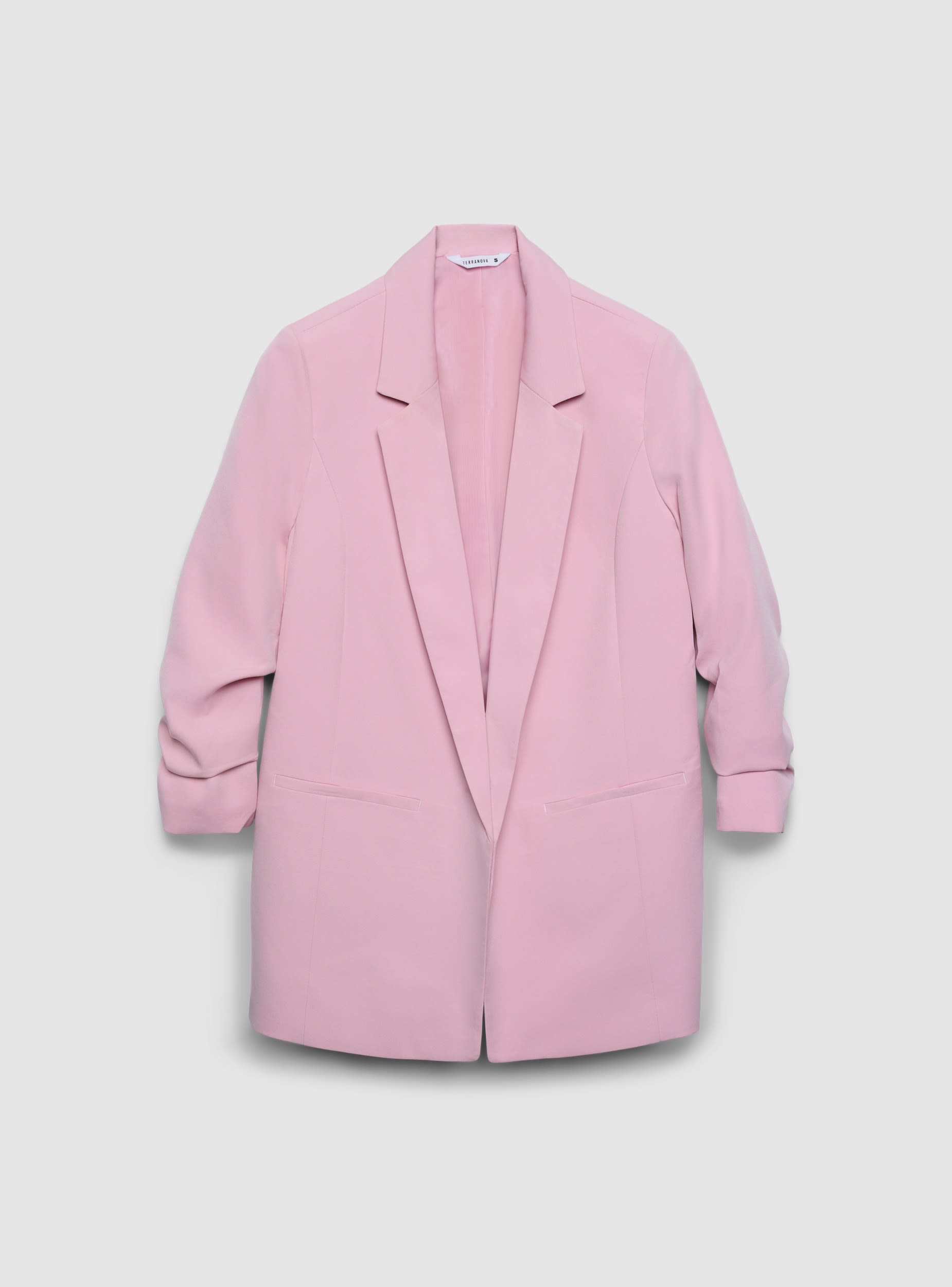 Ženska jakna u jednobojnoj varijanti, sa reverom u obliku koplja i dugim krojem koji izdužuje figuru. Model otvoren bez kopčanja, sa dugim rukavima sa preklopom i uskim džepovima za minimalistički izgled. Postavljena za veću udobnost, nudi regularan kroj i čiste linije. Savršena za posao, večere ili događaje, može se kombinovati sa košuljama, majicama i farmerkama ili krojenim pantalonama za dnevni do večernji izgled.Detalji