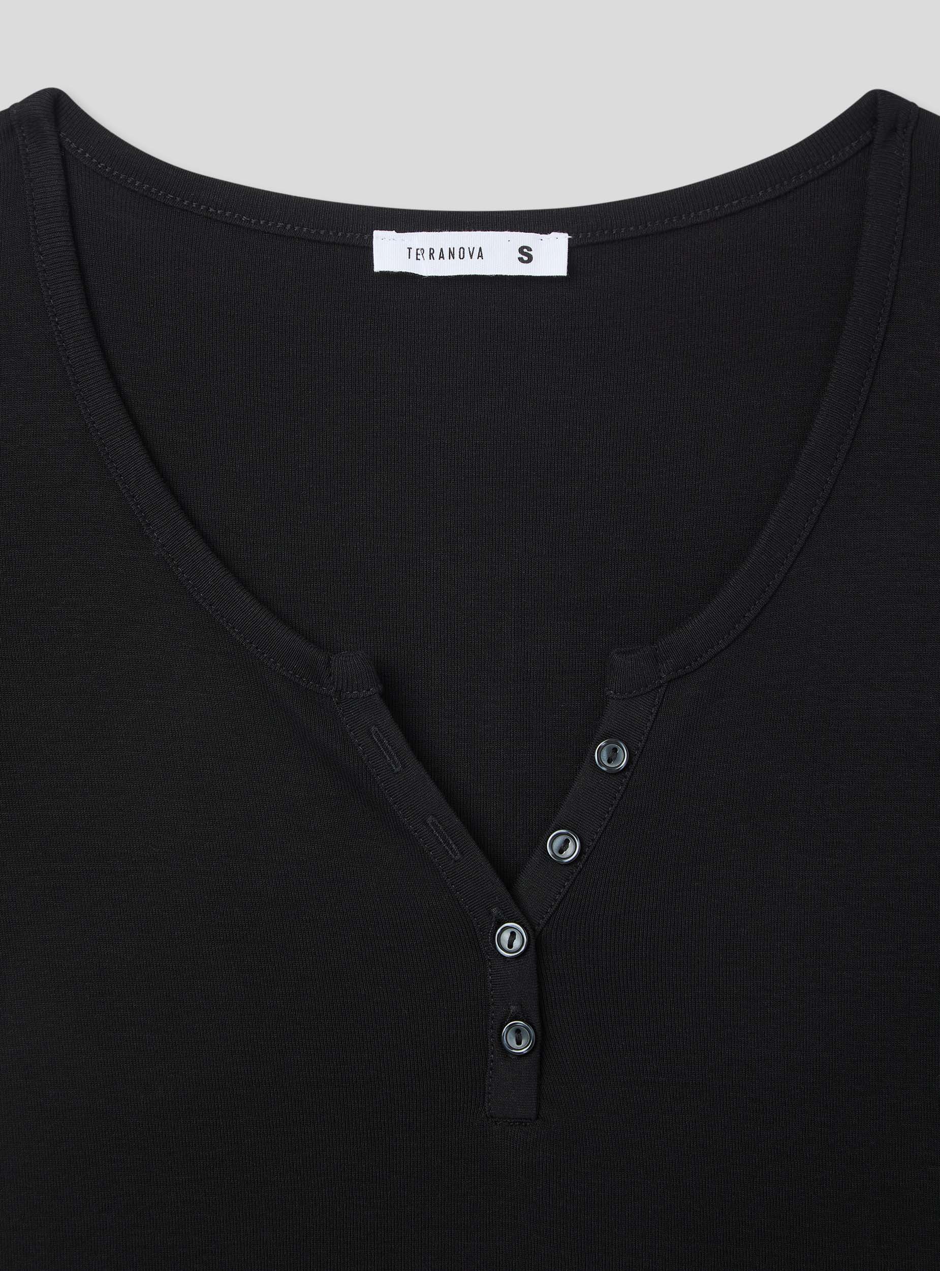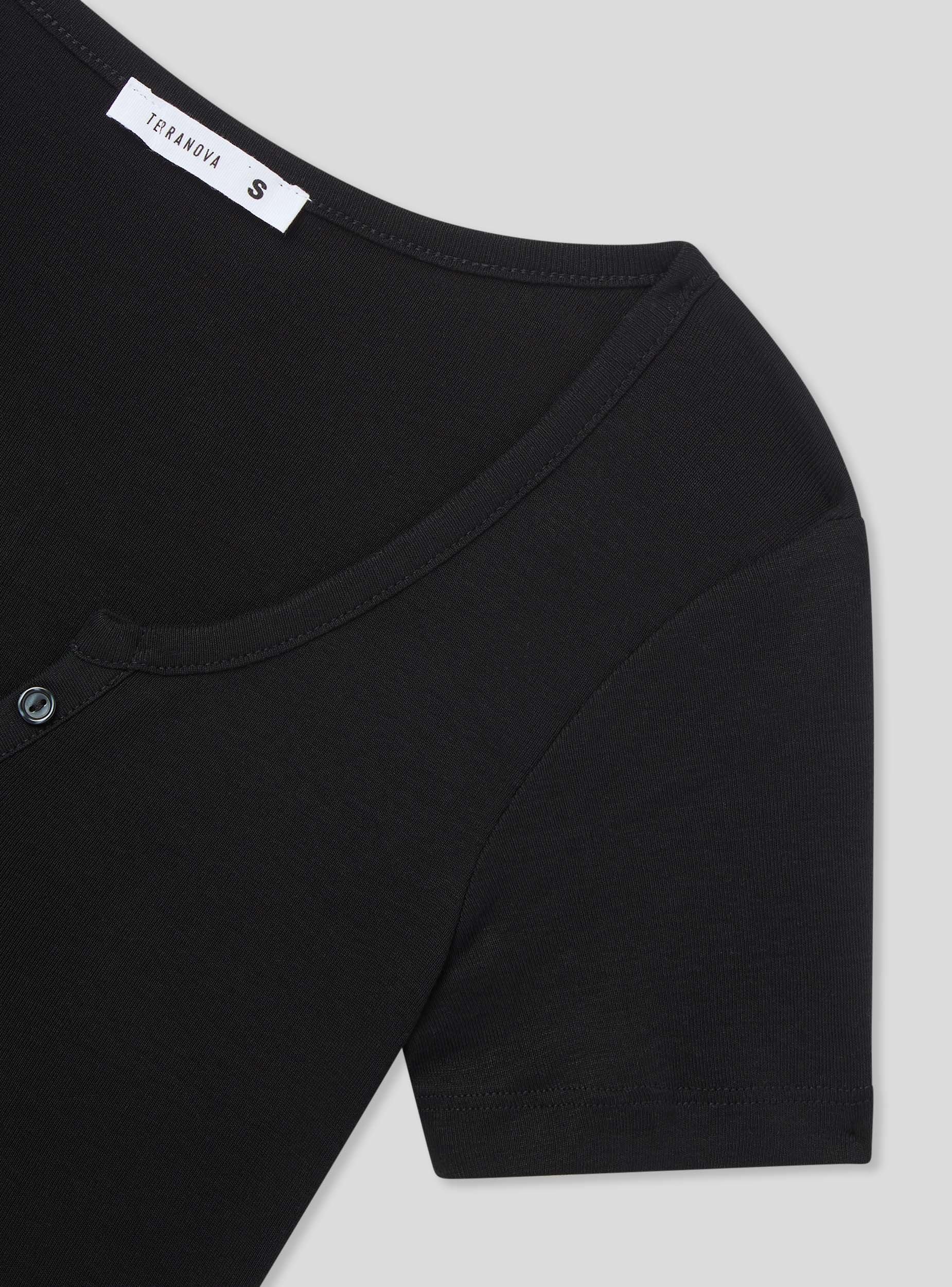 Confezione composta da 2 magliette da donna con scollo serafino e bottoni decorativi. Le magliette presentano una finitura a tinta unita, ideali per un look casual quotidiano. La loro versatilità le rende adatte sia per occasioni informali che per essere abbinate a diversi tipi di abbigliamento, offrendo un'opzione comoda e alla moda.Detalji