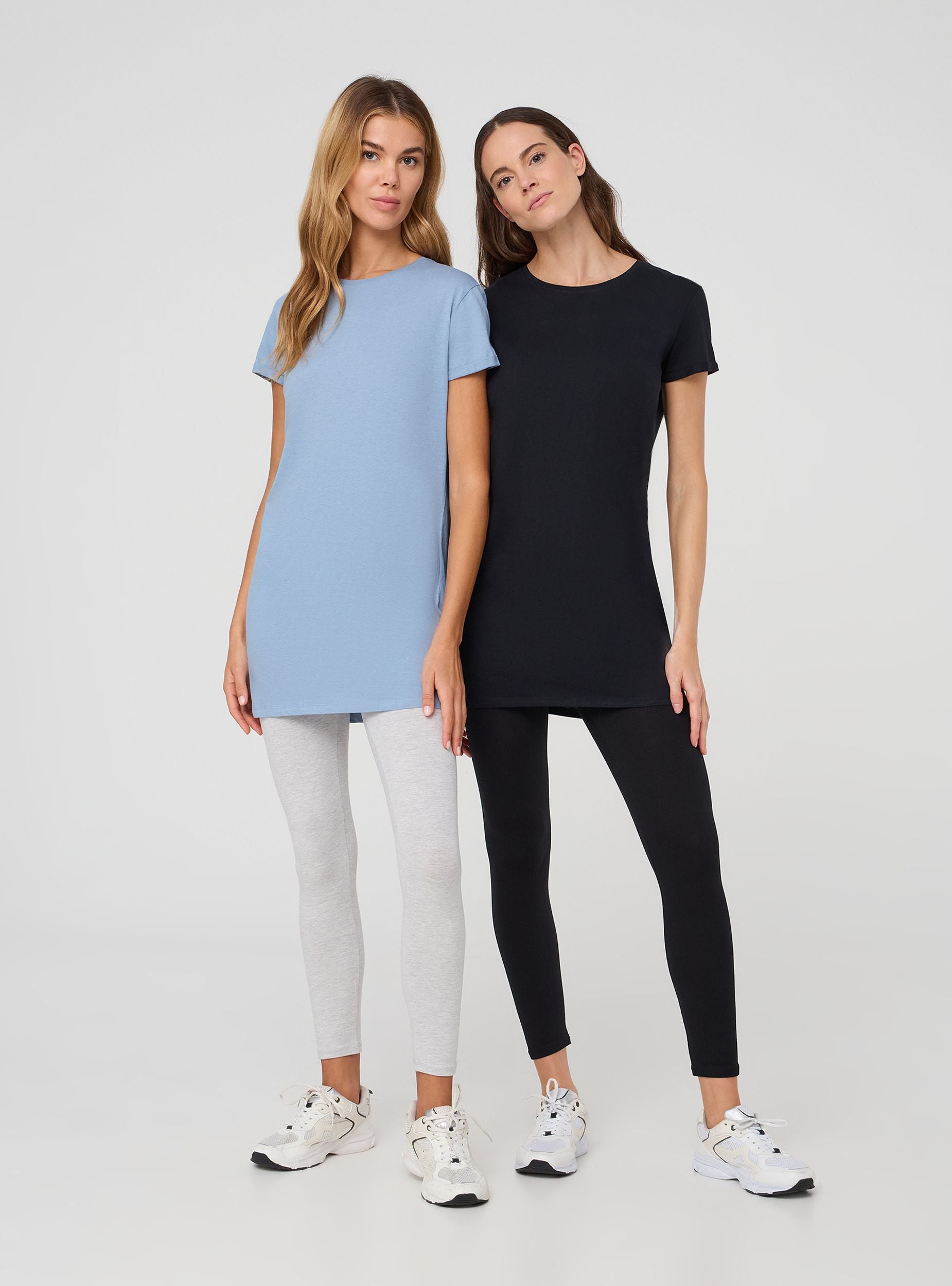 Confezione composta da 2 magliette da donna a tinta unita in versione maxi. Le magliette presentano una vestibilità comoda con maniche corte risvoltate, perfette per un look casual e rilassato. Si adattano a diverse occasioni quotidiane e di tempo libero.Detalji