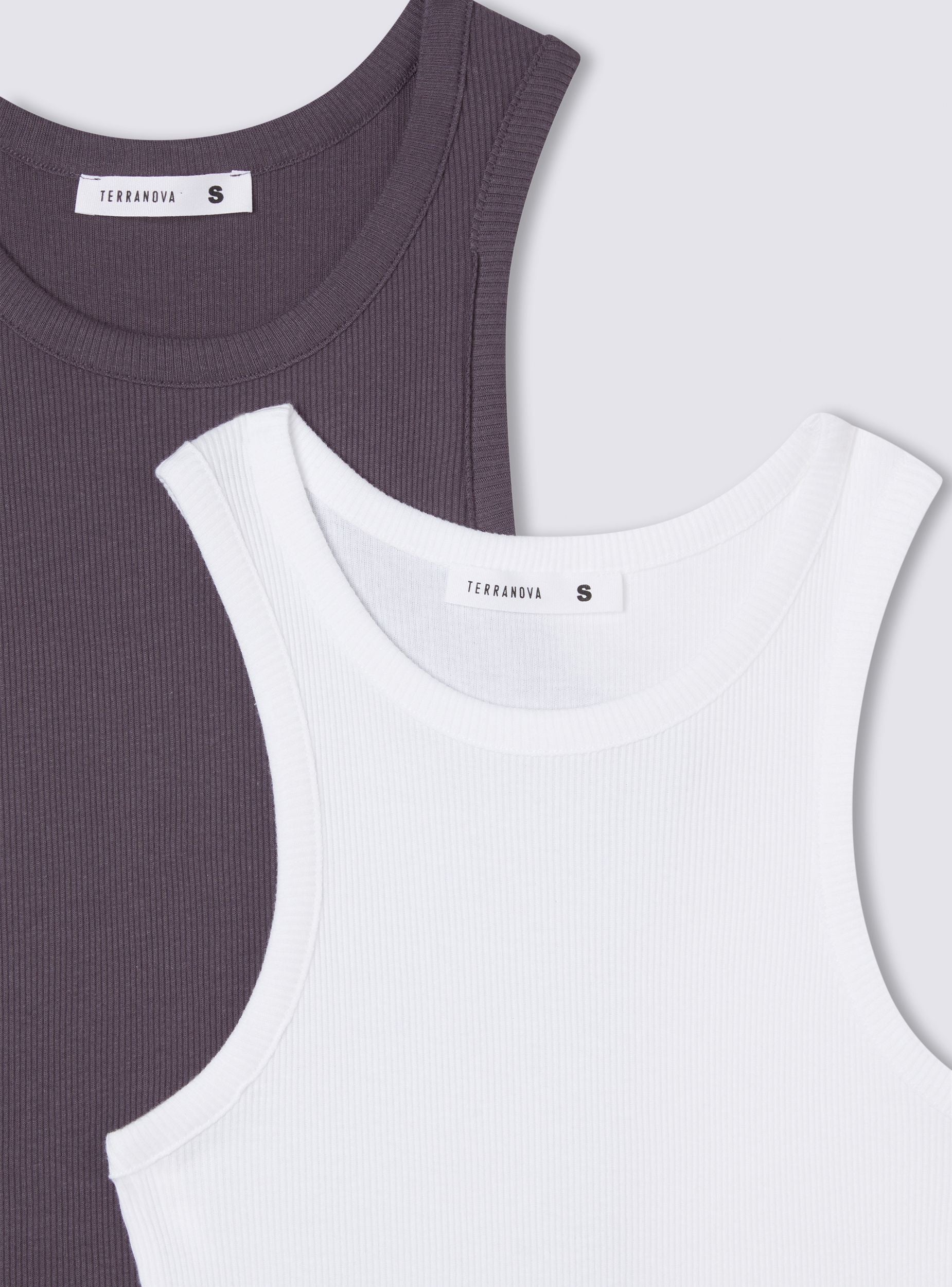 Confezione composta da 2 top da donna modello vogatore, perfetti per un look sportivo o casual. La vestibilità comoda e il design senza maniche offrono libertà di movimento, ideale per il tempo libero o l'attività fisica. La tinta unita li rende versatili e facili da abbinare a jeans, leggings o pantaloncini per un outfit semplice e alla moda.Detalji
