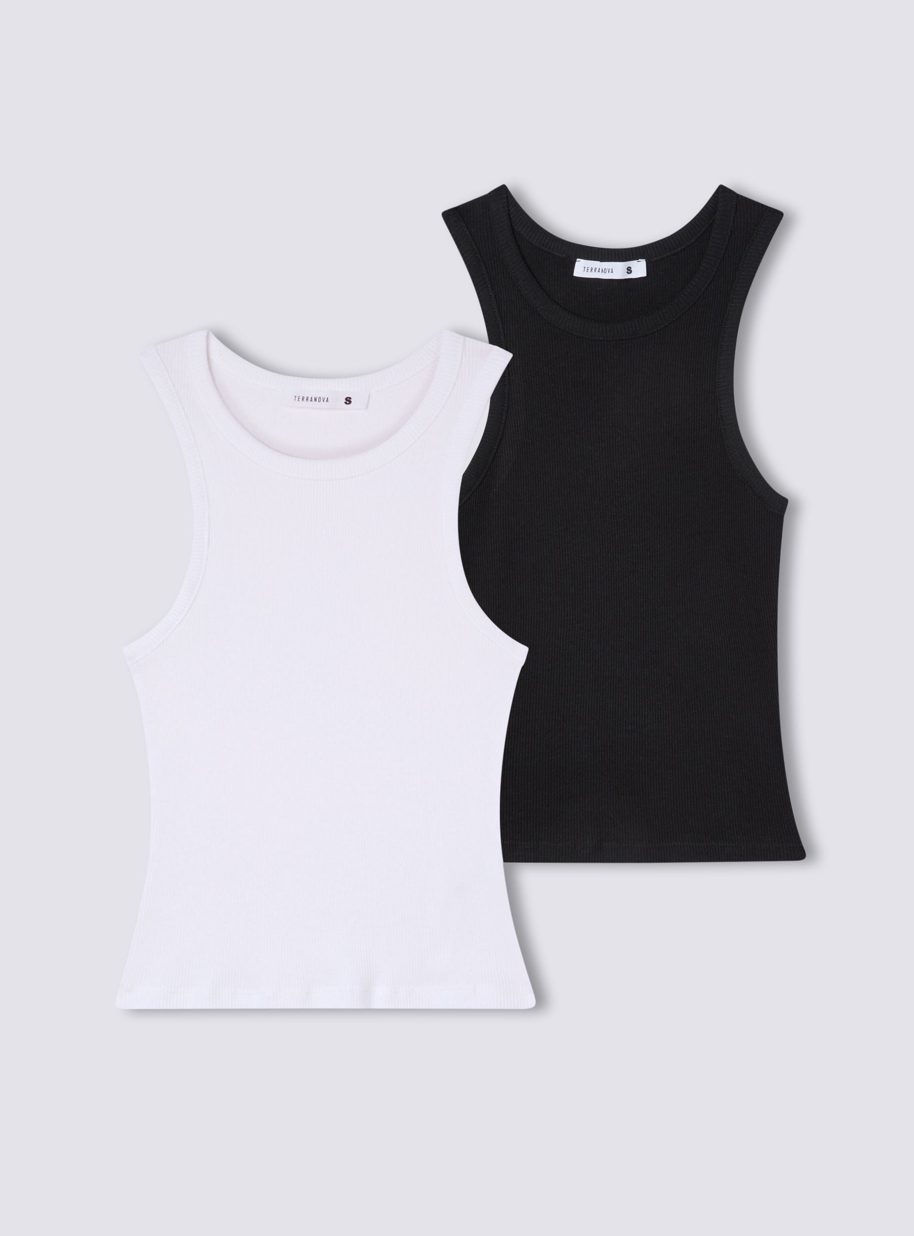 Confezione composta da 2 top da donna modello vogatore, perfetti per un look sportivo o casual. La vestibilità comoda e il design senza maniche offrono libertà di movimento, ideale per il tempo libero o l'attività fisica. La tinta unita li rende versatili e facili da abbinare a jeans, leggings o pantaloncini per un outfit semplice e alla moda.Detalji