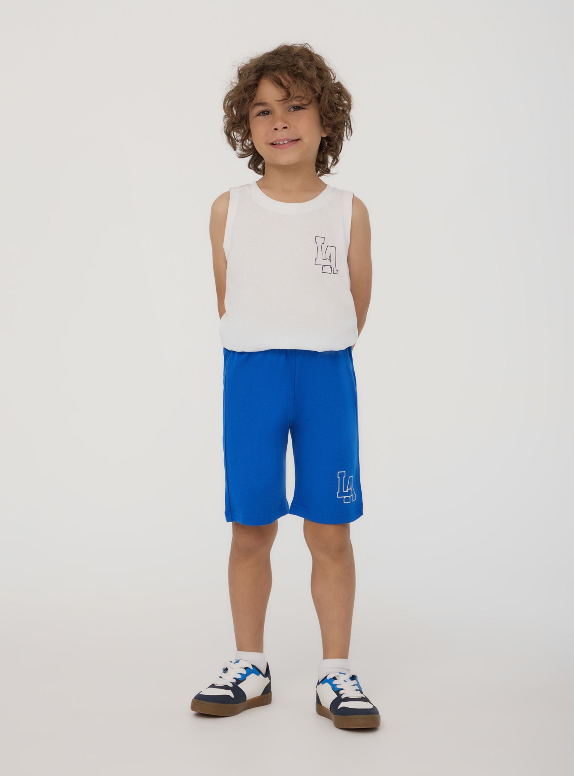 Confezione composta da 2 pantaloncini della tuta da bambino, entrambi con elastico in vita per un comfort ottimale e cordini regolabili per una vestibilità personalizzata. Ogni paio presenta una stampa decorativa su una gamba, che aggiunge un tocco di stile sportivo. Questi pantaloncini sono ideali per le attività all'aperto, lo sport e il tempo libero, garantendo libertà di movimento e praticità.Detalji