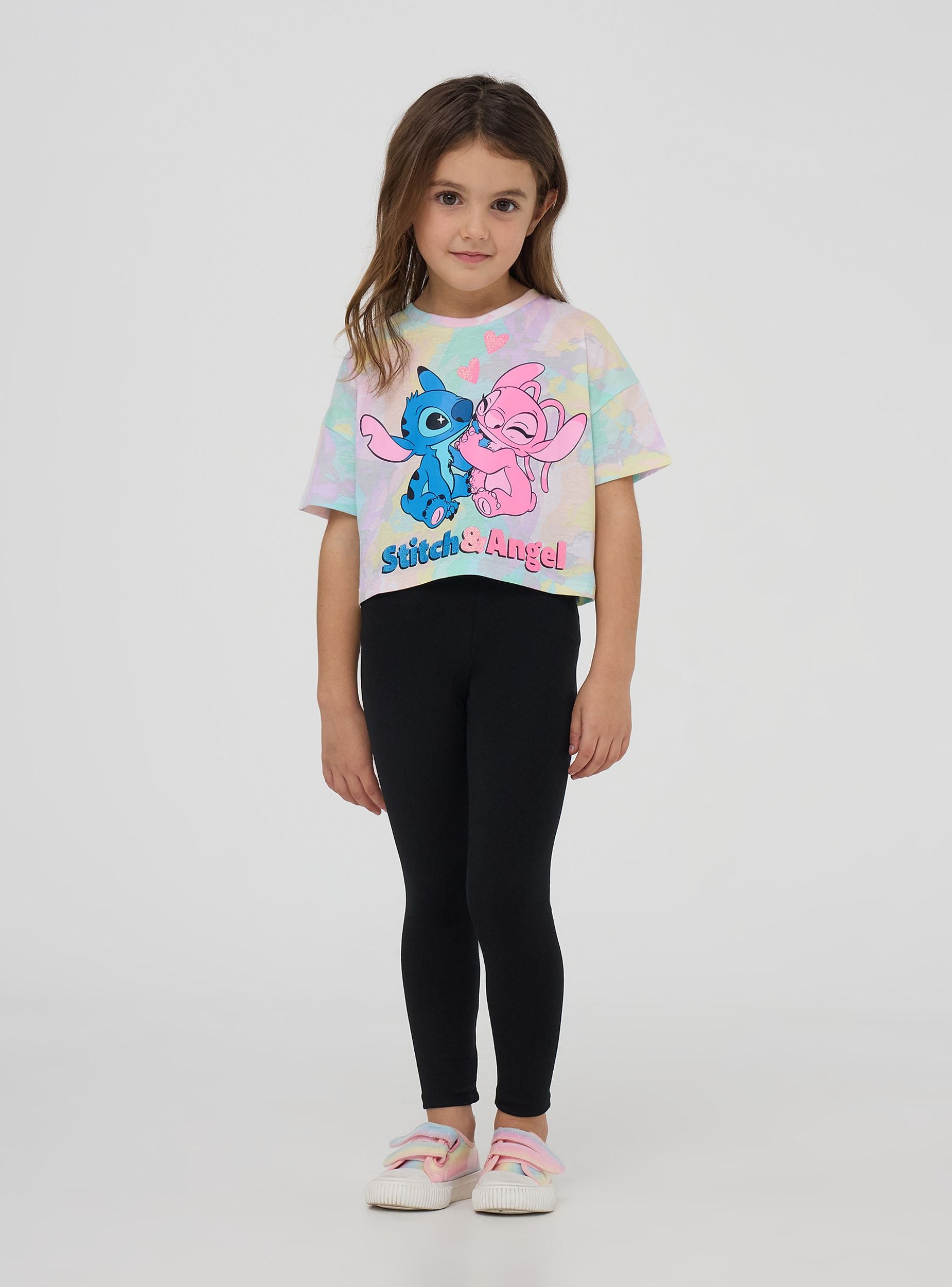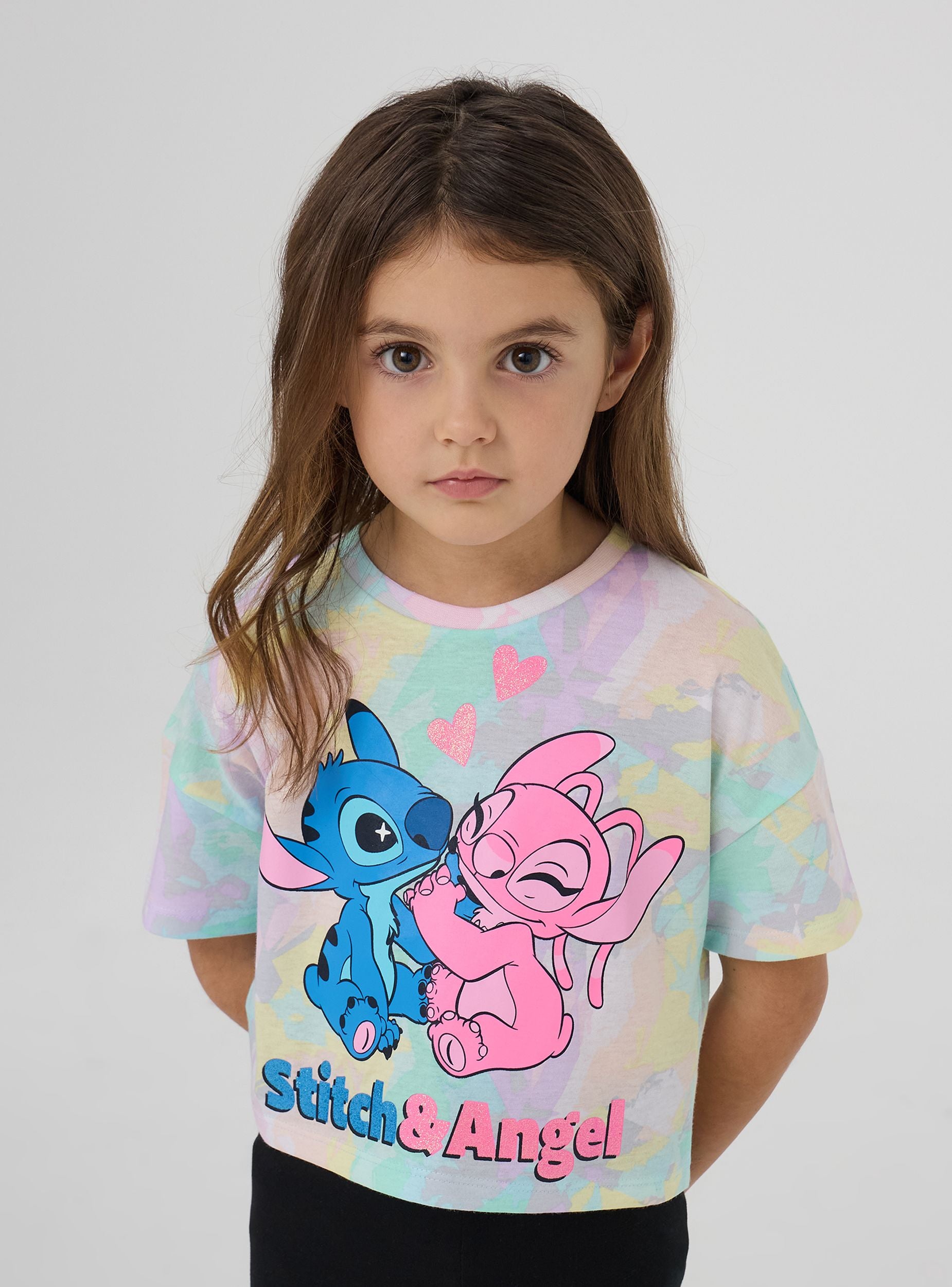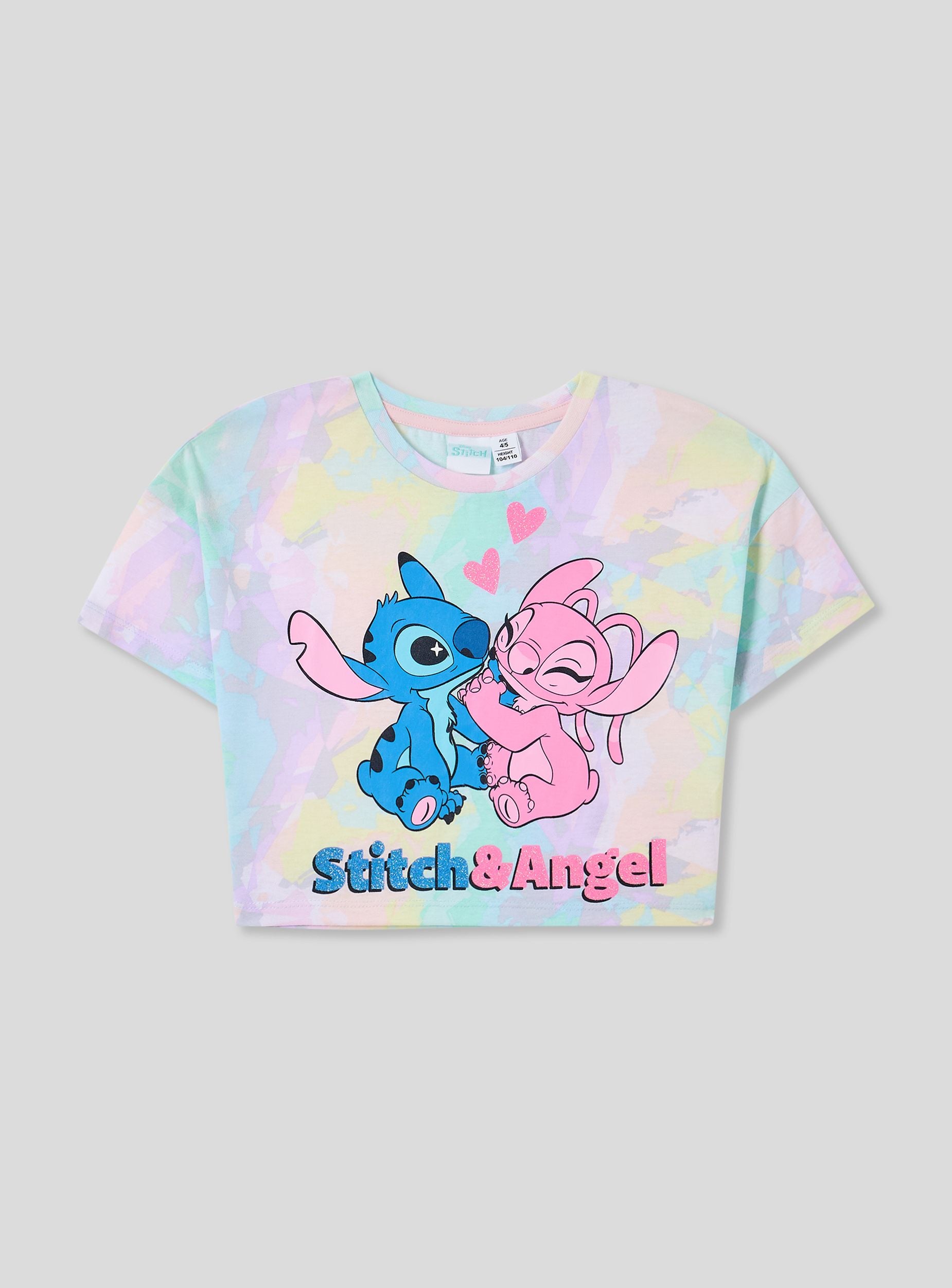 Majica za devojčice savršena za izražavanje radosti u svakoj prilici. Sa kratkim rukavima i okruglim izrezom, izdvaja se po šarenom dizajnu i živopisnom printu Stitch i Angel®, idealna za kreiranje zabavnih i originalnih kombinacija. Neophodan komad za dodavanje daška mašte svakodnevnom garderoberu.Detalji