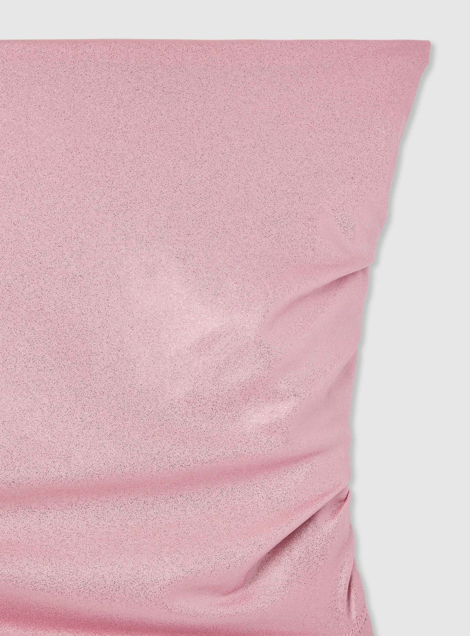 Ženski top bez bretela, idealan za večernji izgled ili žurke. Model bez naramenica sa nabranim detaljima sa strane koji ističu siluetu i dodaju pokret. Uže krojenje i kratka dužina, savršen za kombinovanje sa pantalonama visokog struka, midi suknjama ili blejzerima za sofisticirani outfit. Jednobojni dizajn sa sjajnim efektom koji osvetljava izgled.Detalji