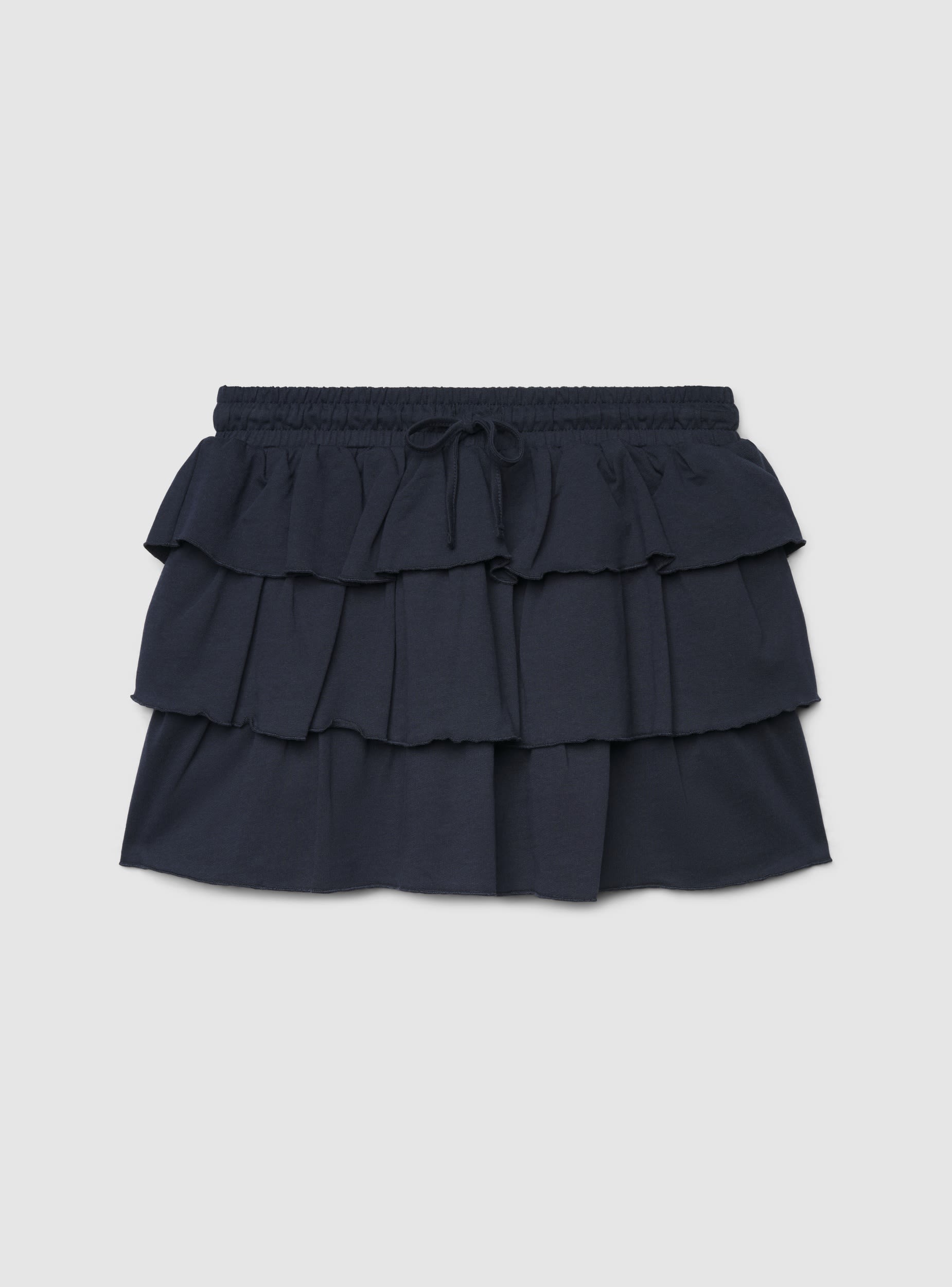 Ženske jednobojne suknja-pantalone, savršene za ležeran i moderan izgled. Kratki dizajn sa slojevitim volanima daje pokret i romantičan dodir, idealno u kombinaciji sa majicama i patikama ili sa topom i sandalama. Visok struk sa elastičnom trakom i podesivim vezicama za udobno pristajanje. Donji rub sa blago talasastim ivicama.