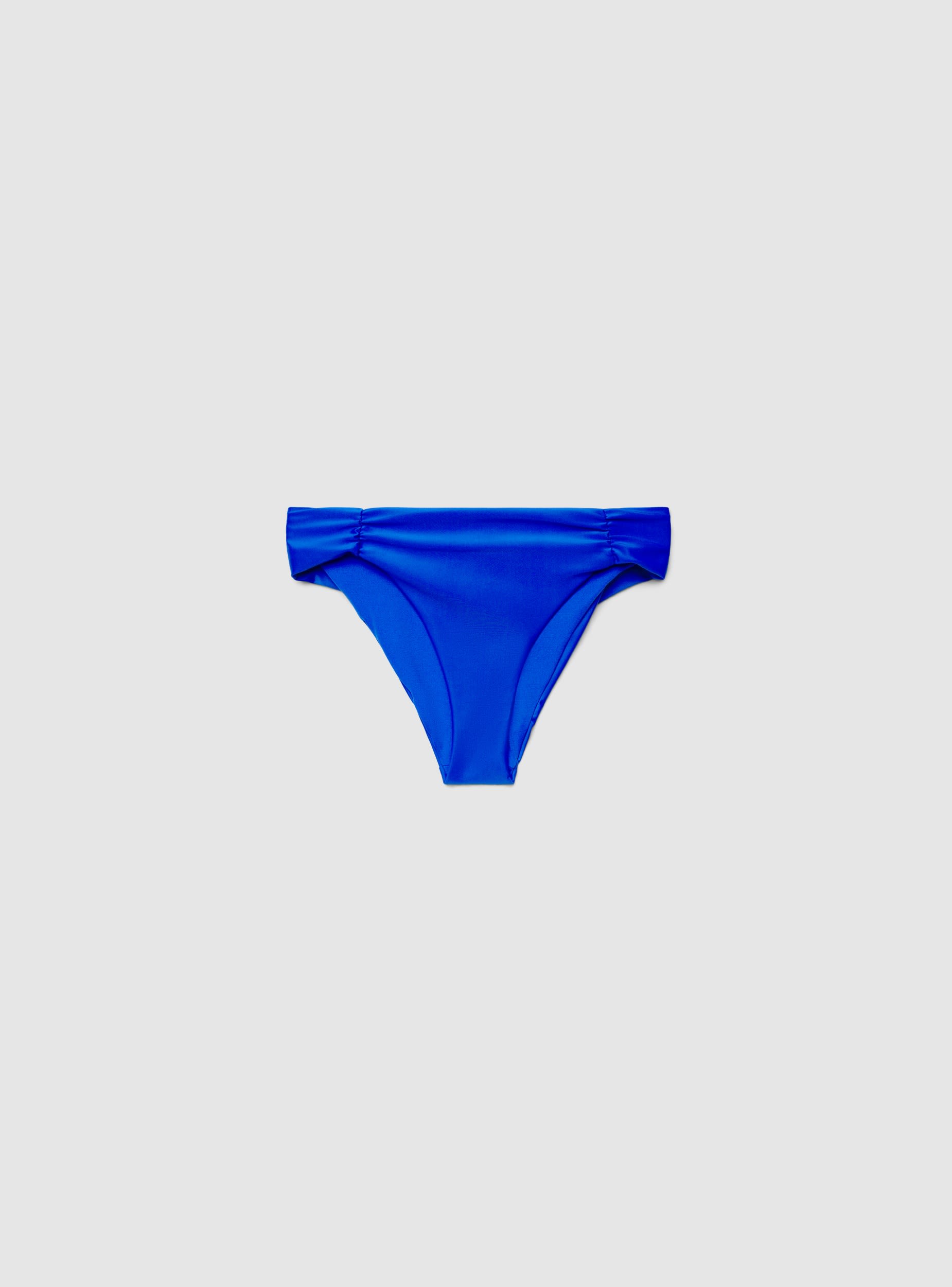 Ženski bikini slip u jednobojnoj varijanti, dizajniran za dane na moru i bazenu. Dizajn sa širokim pojasom i naborima na bokovima naglašava siluetu i pruža udobno pristajanje. Jednostavan kroj i redovan izrez na nogavicama, idealan za kombinovanje sa odgovarajućim ili različitim topovima kako biste kreirali uvek različite letnje kombinacije.Detalji