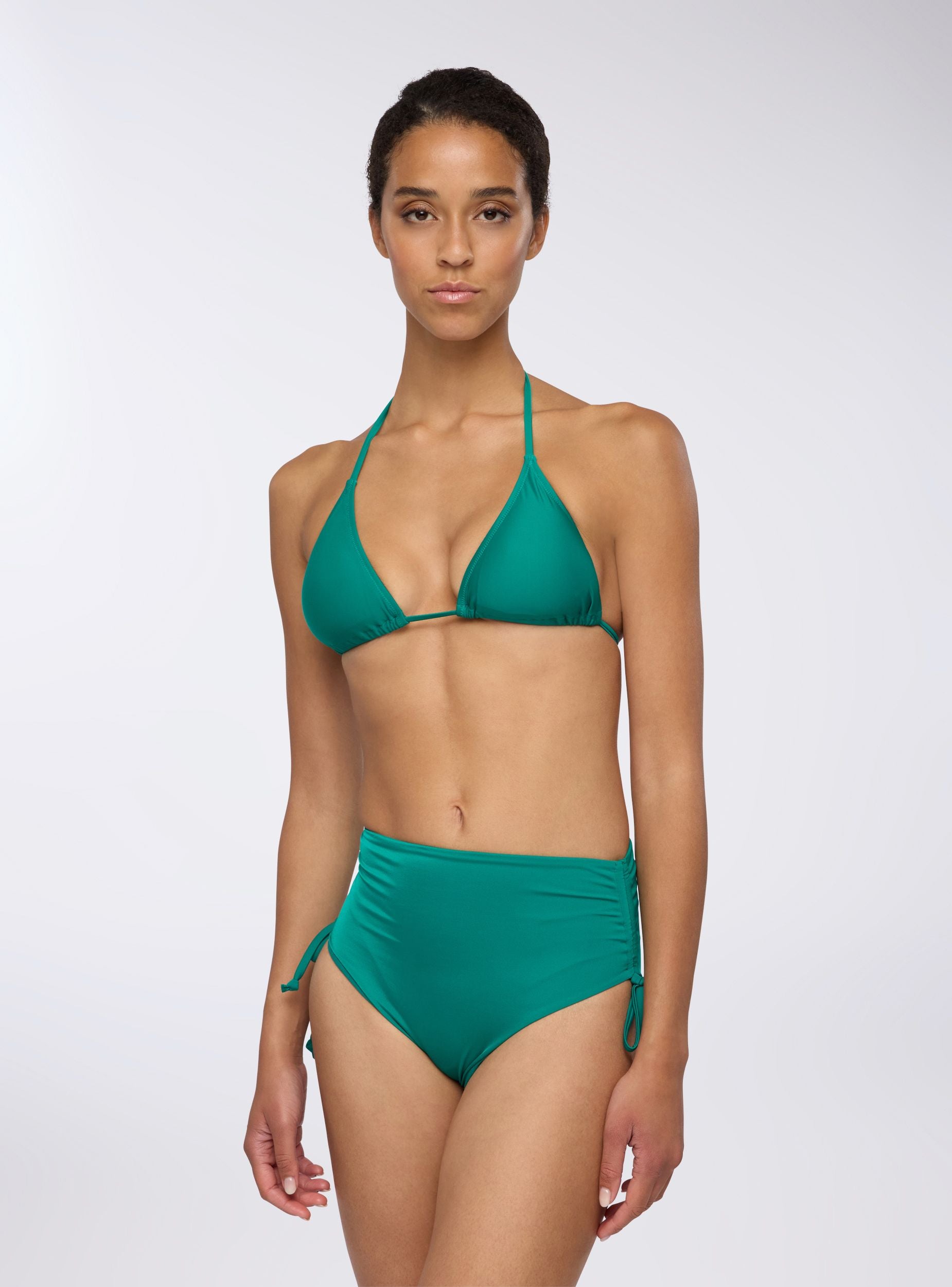Slip da donna per bikini perfetto per una giornata al mare o in piscina. Caratterizzato da un design tinta unita, questo modello presenta una vita alta regolabile grazie ai laccetti laterali, che permettono di adattare la vestibilità e creare diverse opzioni di stile. Ideale per chi desidera comfort e versatilità senza rinunciare a un tocco di personalità, è un capo essenziale per completare il proprio look estivo.Detalji
