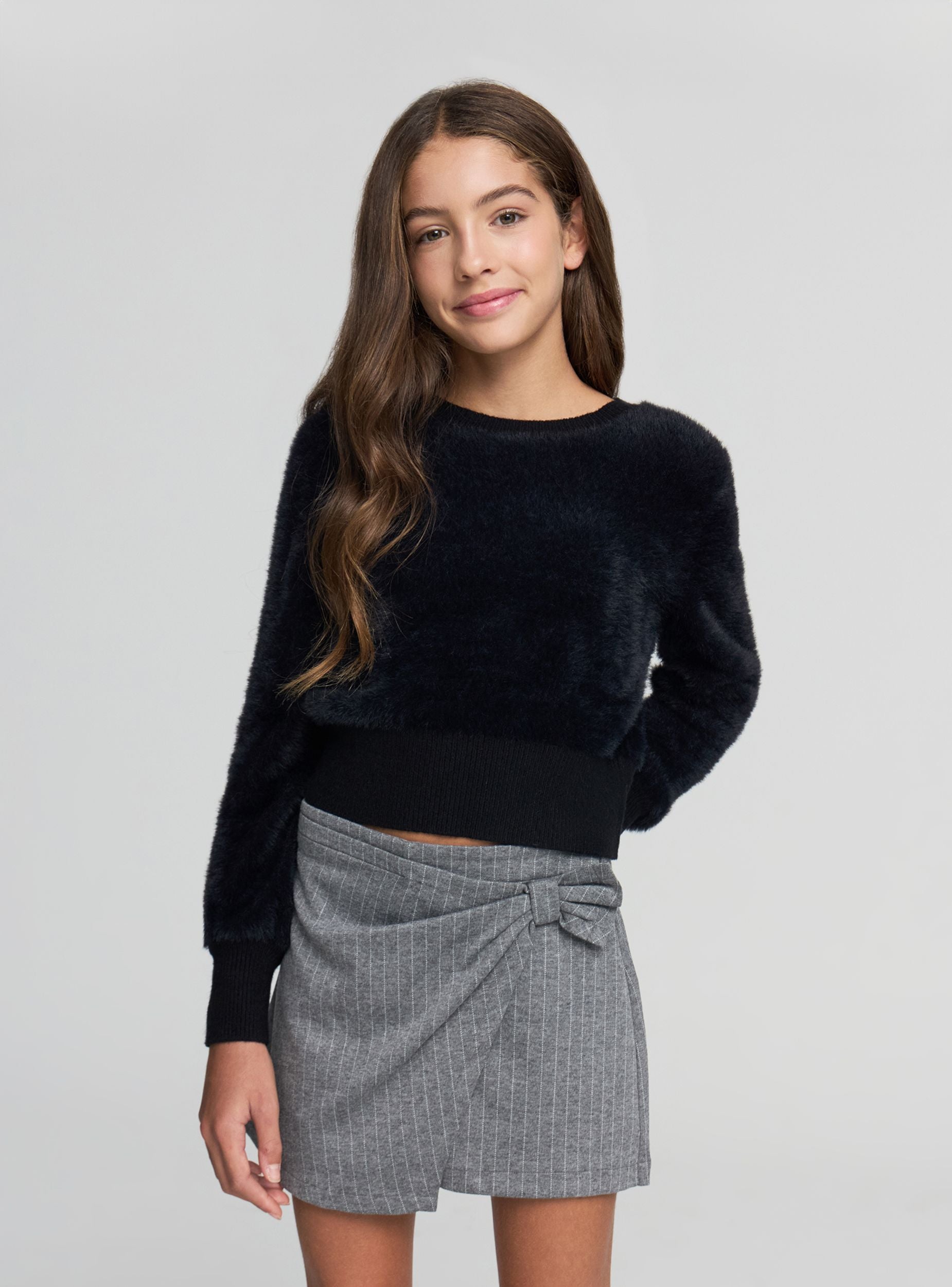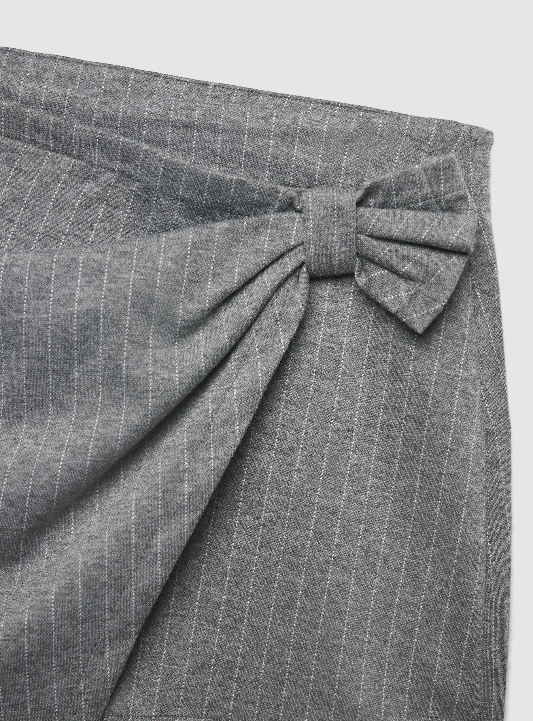 Dečiji šorts-sa suknjom sa prugastim dezenom. Kratki model sa prednjim panelom u stilu omota i bočnim mašnom koja daje elegantan dodir. Udoban i praktičan kroj, lako se kombinuje sa košuljama ili majicama koje se uvlače i kardiganom. Bez vidljivog zatvarača za brzo oblačenje. Zadnji deo kao šorts za slobodu pokreta. Savršeni uz patike ili baletanke.Detalji