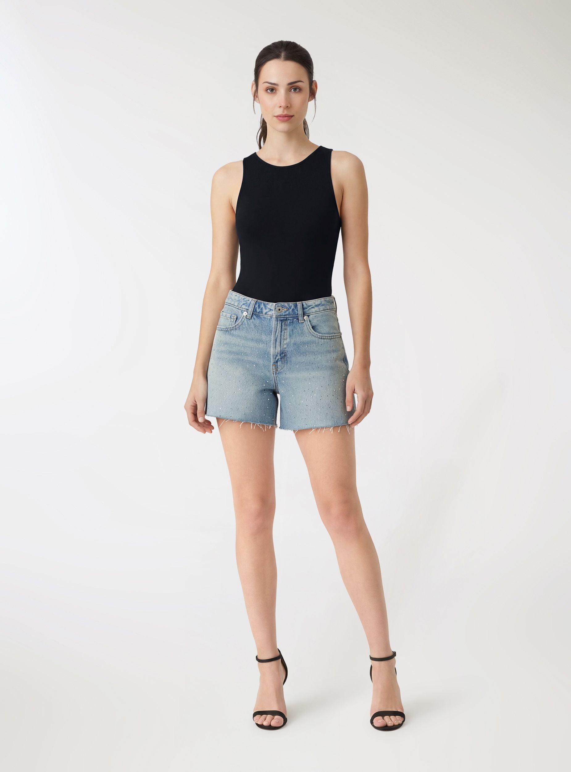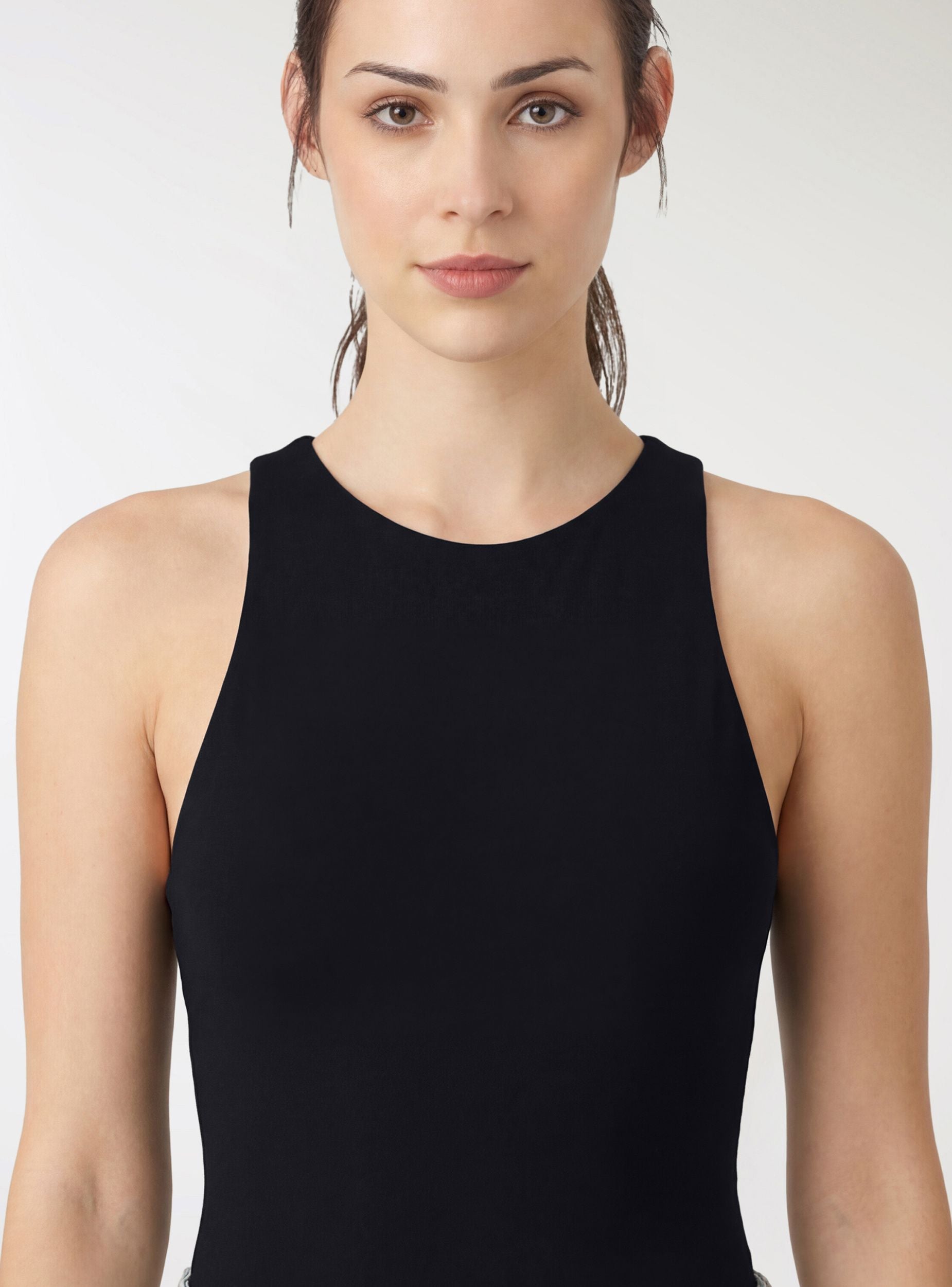 Ženski bodi u jednoj boji sa američkim izrezom i širokim bretelema. Zatvaranje na pritisak dugmiće između nogu za praktičnost. Uski kroj koji prati liniju tela, idealan ispod blejzera ili košulja za doteran izgled, ali takođe savršen i sa farmerkama ili suknjama za ležerne kombinacije.Detalji