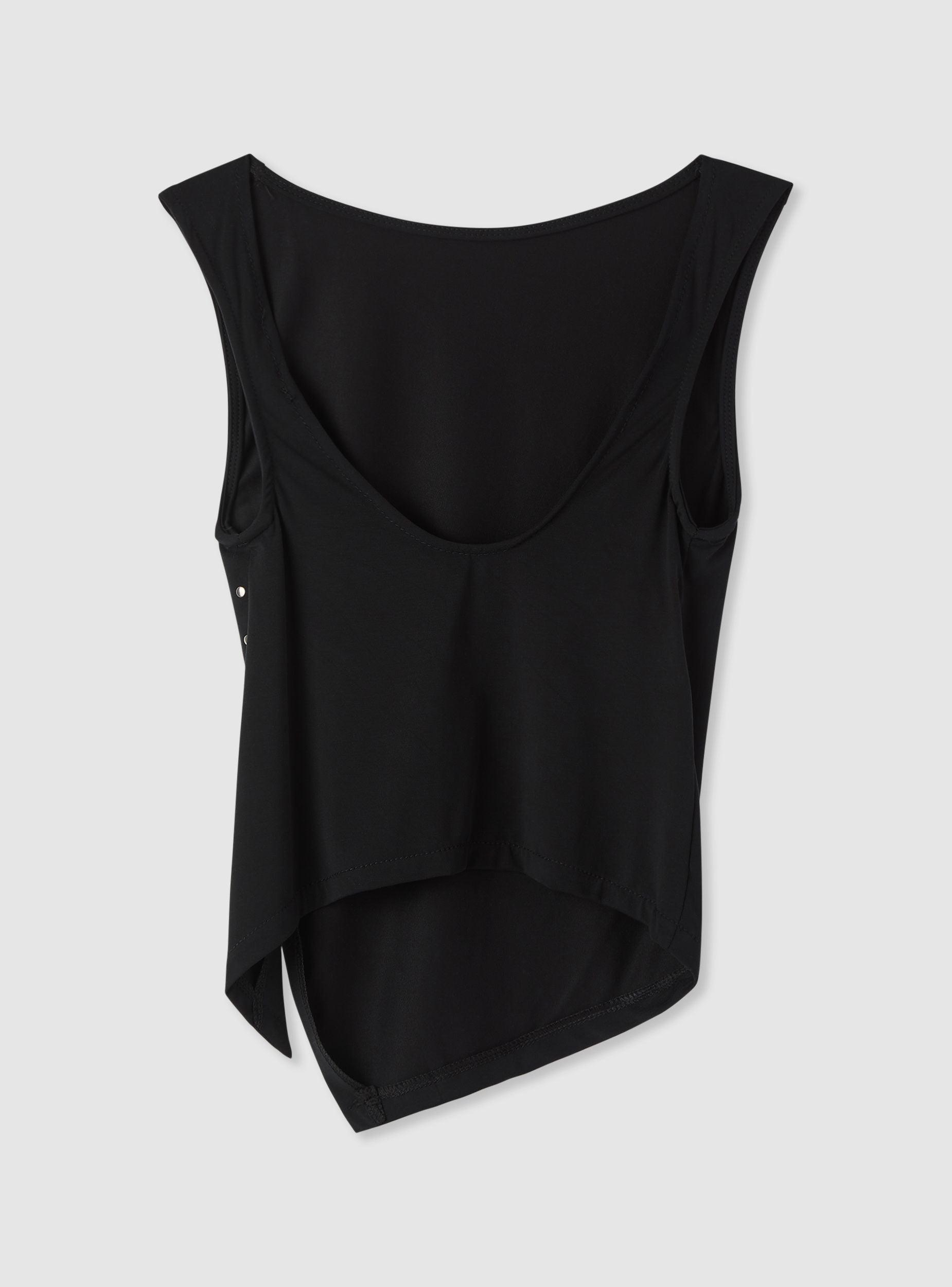 Ženski top bez rukava u jednobojnoj varijanti, dizajniran da unese karakter u svakodnevne kombinacije. Širok izrez i široka ramena ističu liniju, dok asimetrični donji deo sa bočnim prorezima i ukrasnim nitnama dodaje oštar detalj. Lako se kombinuje sa farmerkama, krojenim pantalonama ili suknjama za kancelarijske i ležerne outfite.Detalji