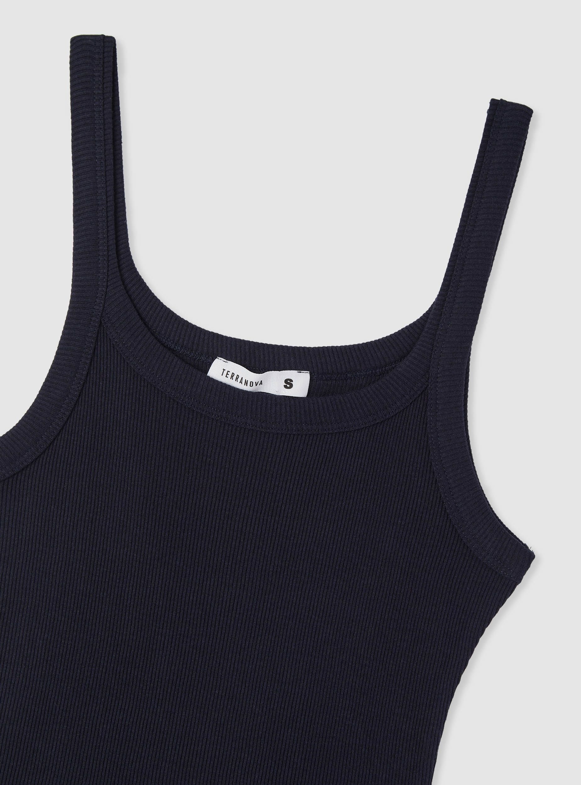 Ženska jednobojna majica sa tankim bretelema i okruglim izrezom. Rebrasti materijal pruža udobnost i pristajanje, idealna za nošenje ispod jakni ili košulja za slojevite kombinacije, ili samostalno sa farmerkama ili šortsevima u slobodno vreme. Minimalistički i ženstveni kroj, normalna dužina i uredno obrađeni ivice za čist i svestran izgled.Detalji
