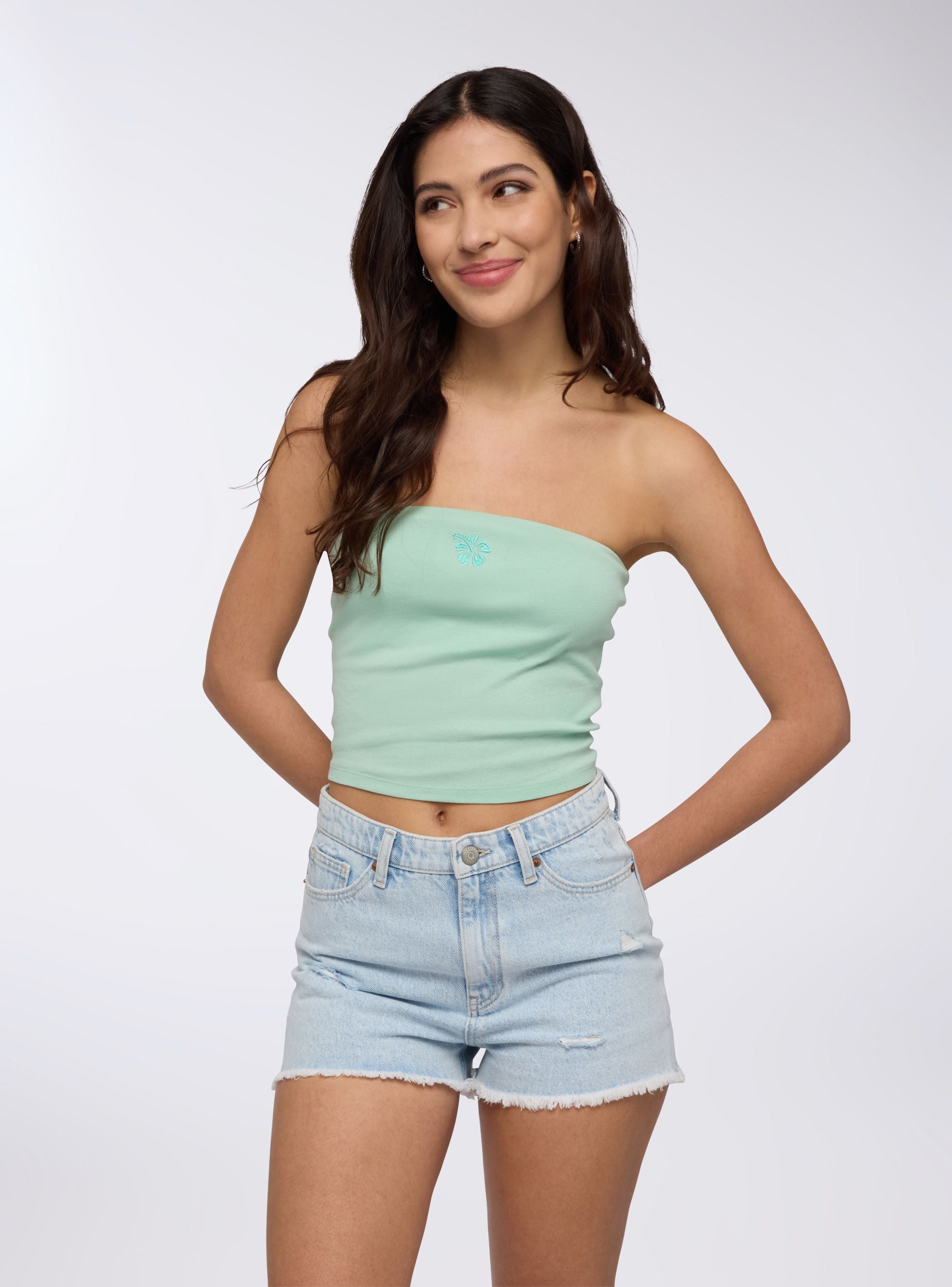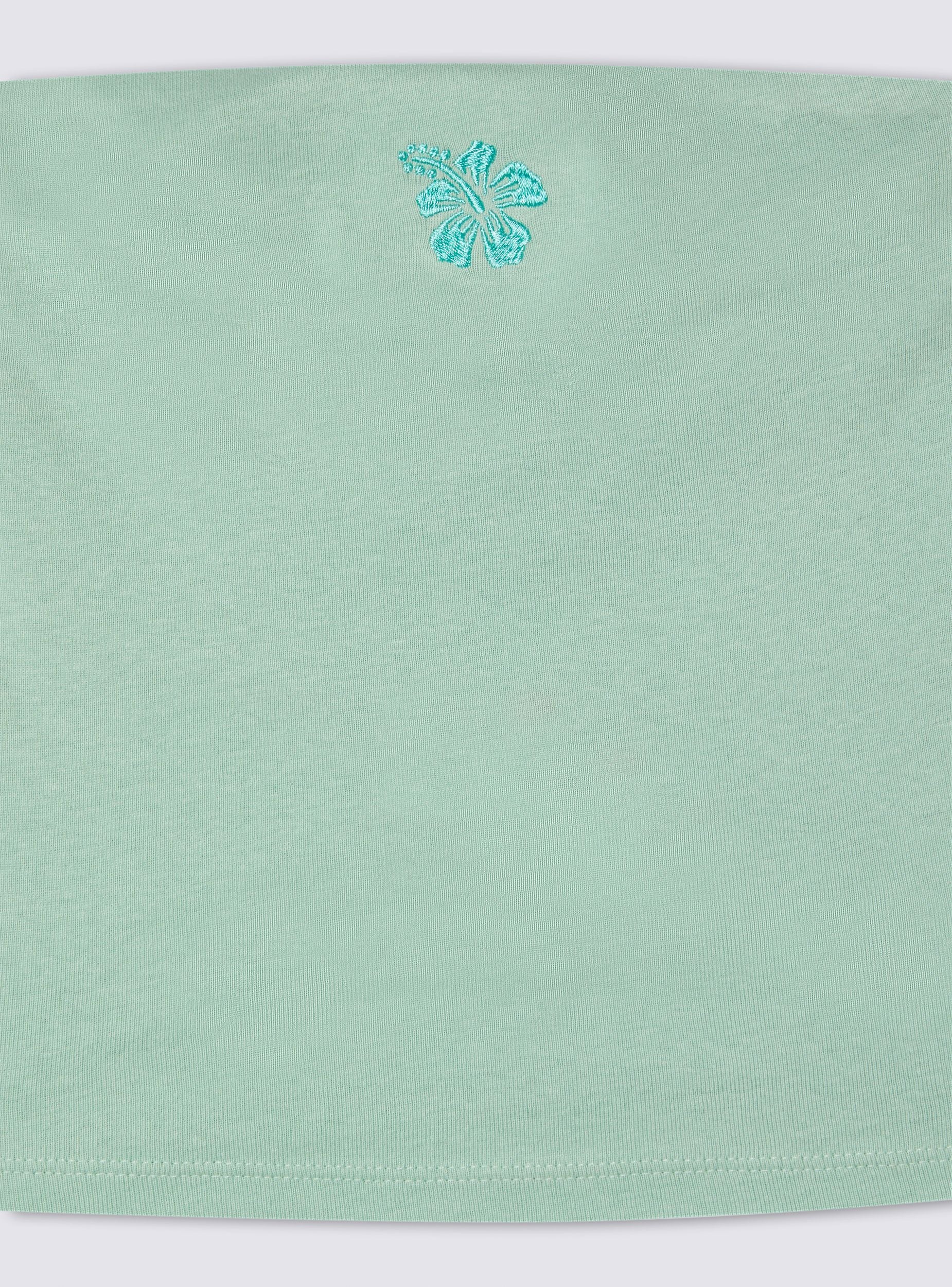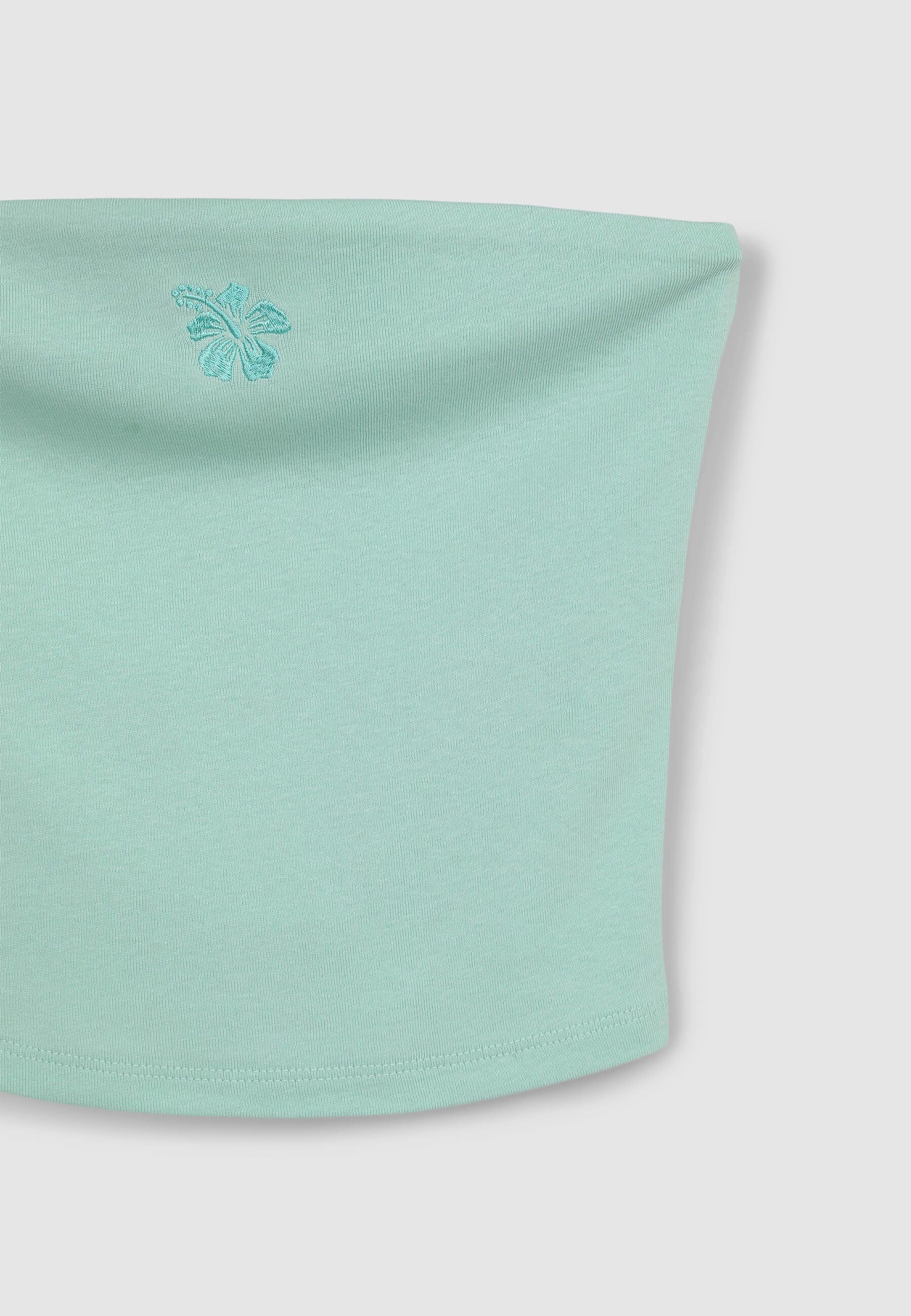 Top da donna dal design crop a fascia, ideale per un look fresco e versatile. Caratterizzato da una silhouette minimalista con dettaglio ricamato sul fronte che dona un tocco distintivo al capo. La sua struttura avvolgente assicura una vestibilità confortevole e femminile, perfetta per completare outfit casual o abbinamenti più sofisticati. La tinta unita lo rende facile da combinare, per uno stile sempre in linea con le tendenze.Detalji
