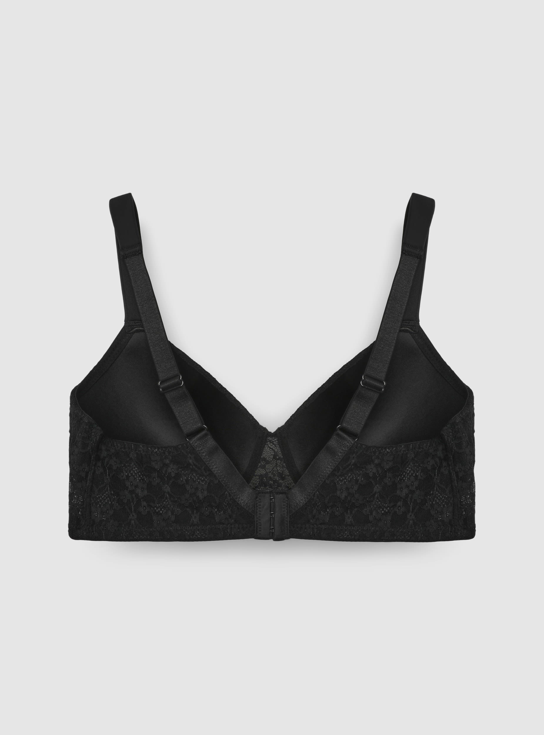 Ženski grudnjak sa trokutastim korpicama presvučenim čipkom u jednobojnoj varijanti, dizajniran da pruži svakodnevnu podršku i udobnost. Podesive naramenice i zatvaranje na kukice sprijeda za praktično pristajanje. Idealan ispod košulja ili uskih majica zahvaljujući obavijajućem dizajnu koji ističe siluetu.Detalji