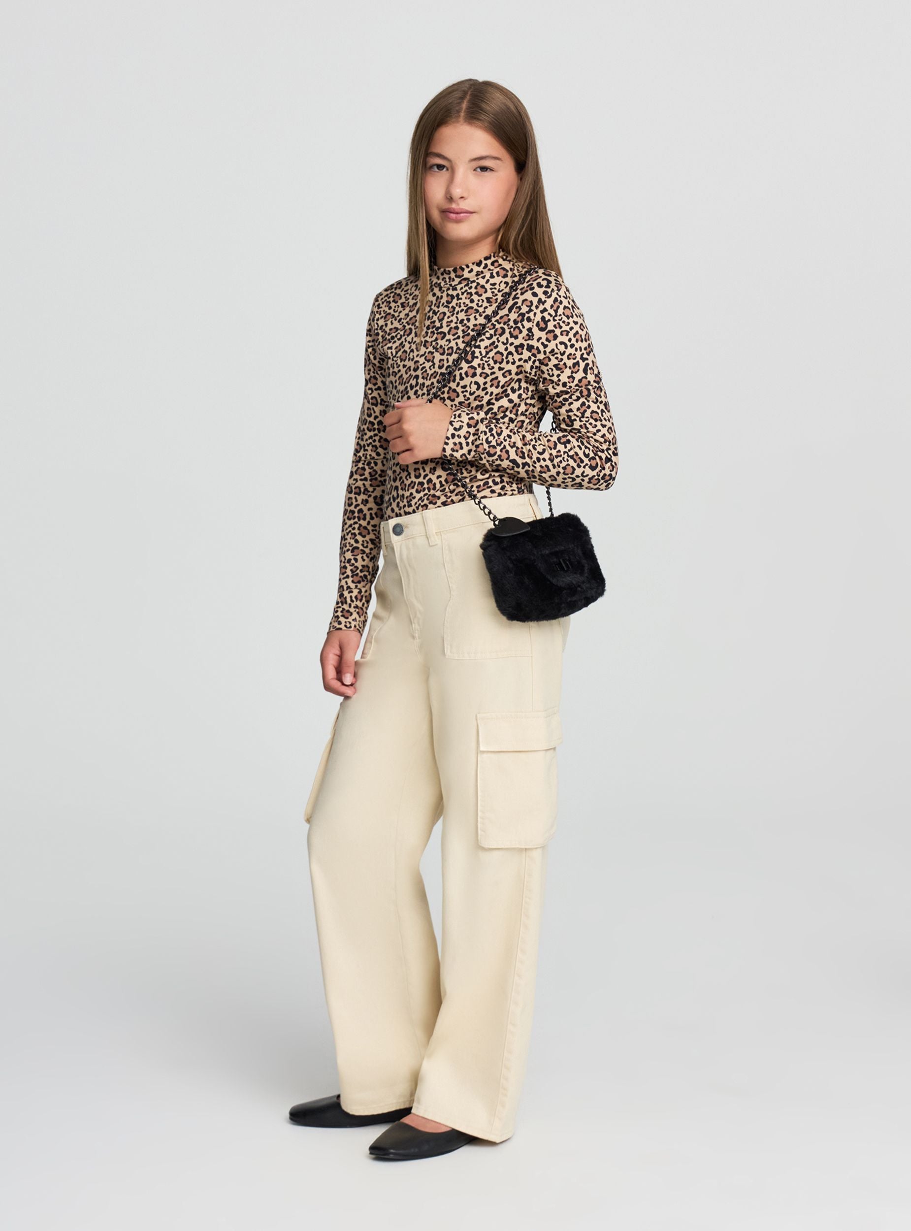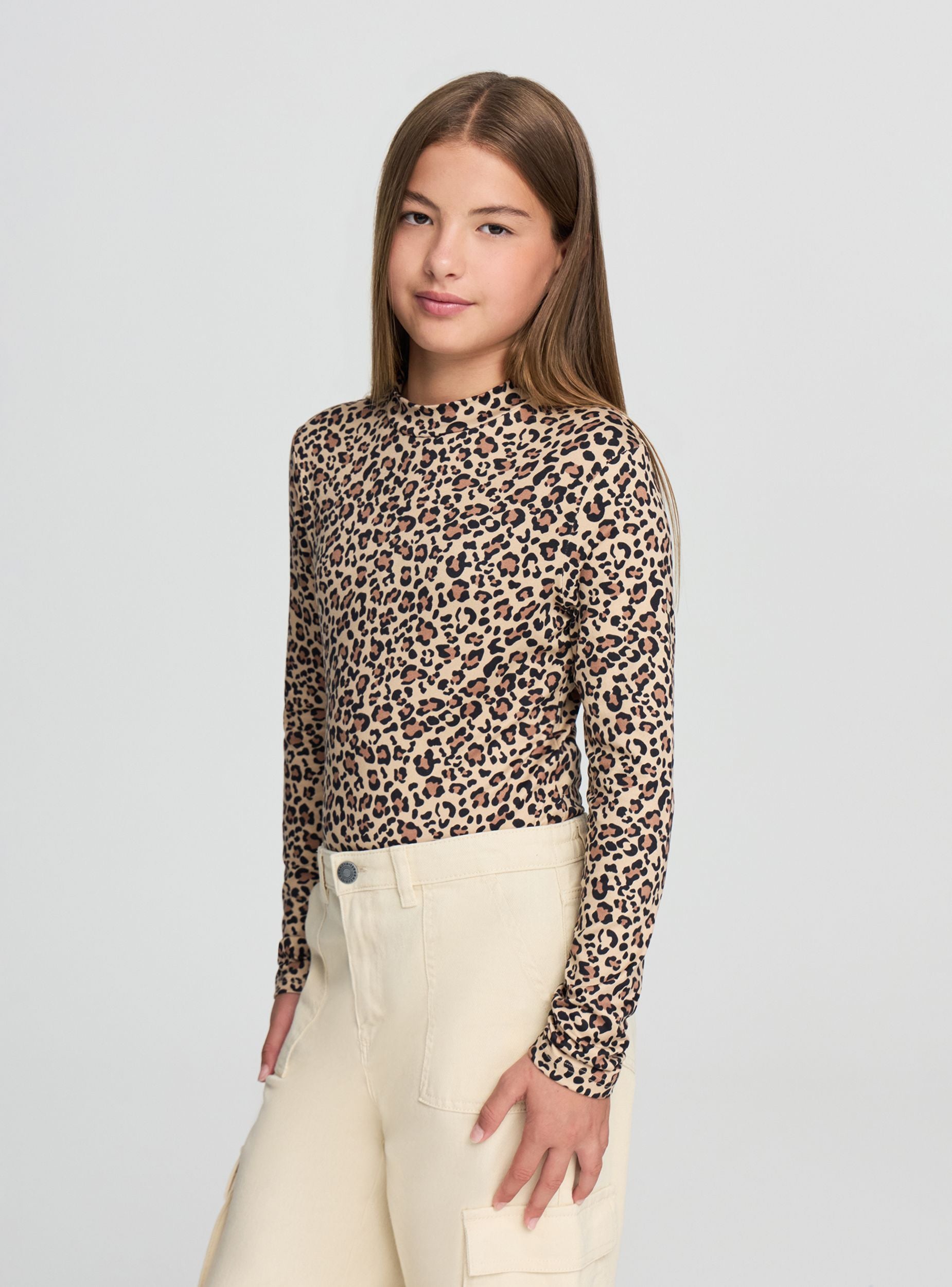 Bodi za devojčice sa dugim rukavima i animal printom. Idealan za kreiranje ležernih i modernih odevnih kombinacija, ovaj komad se ističe uskim krojem i praktičnim zatvaranjem. Savršen za kombinovanje sa pantalonama ili suknjama, pruža udobno pristajanje i originalan izgled. Svestran komad koji obogaćuje garderobu sa stilom.Detalji