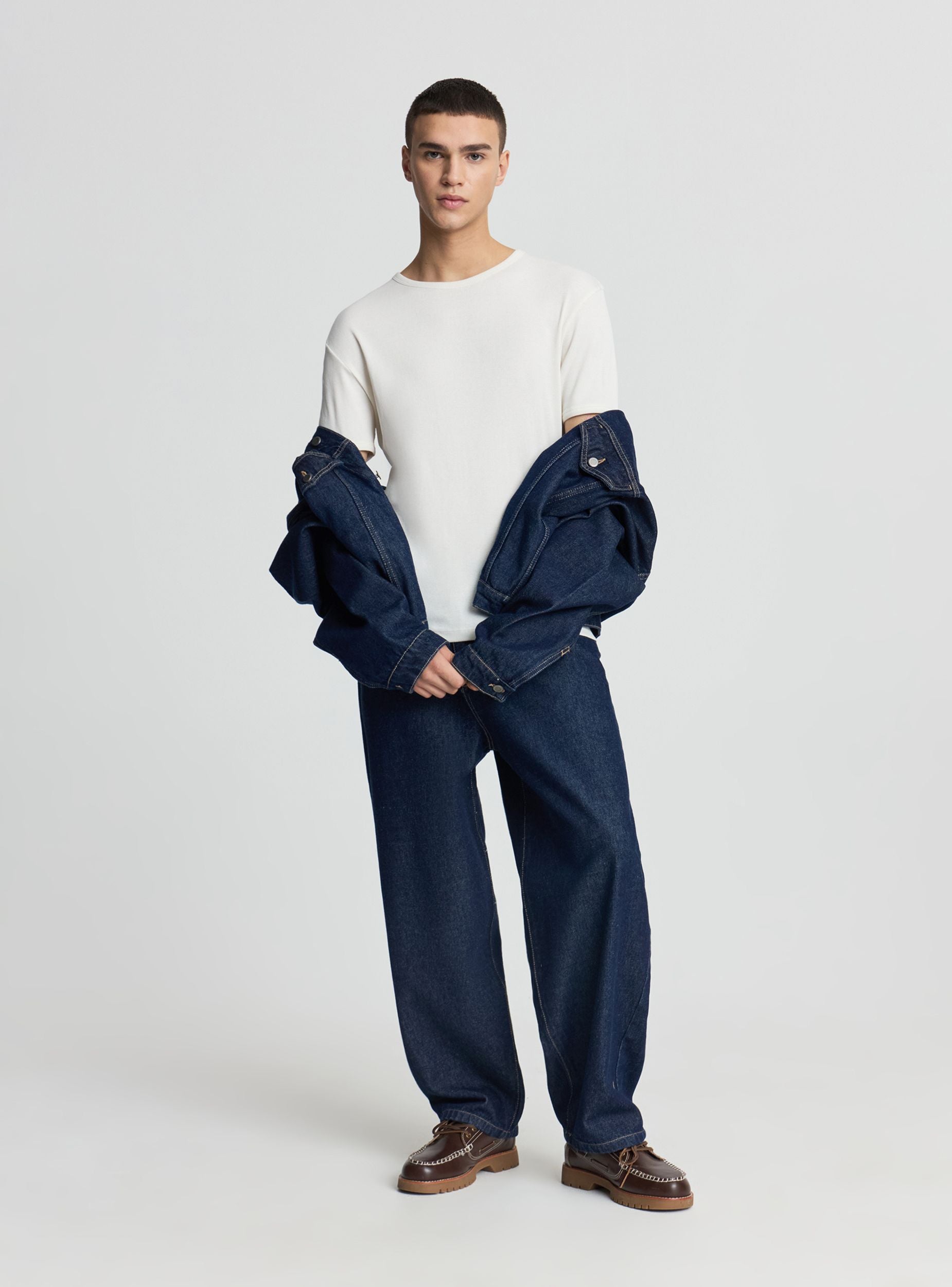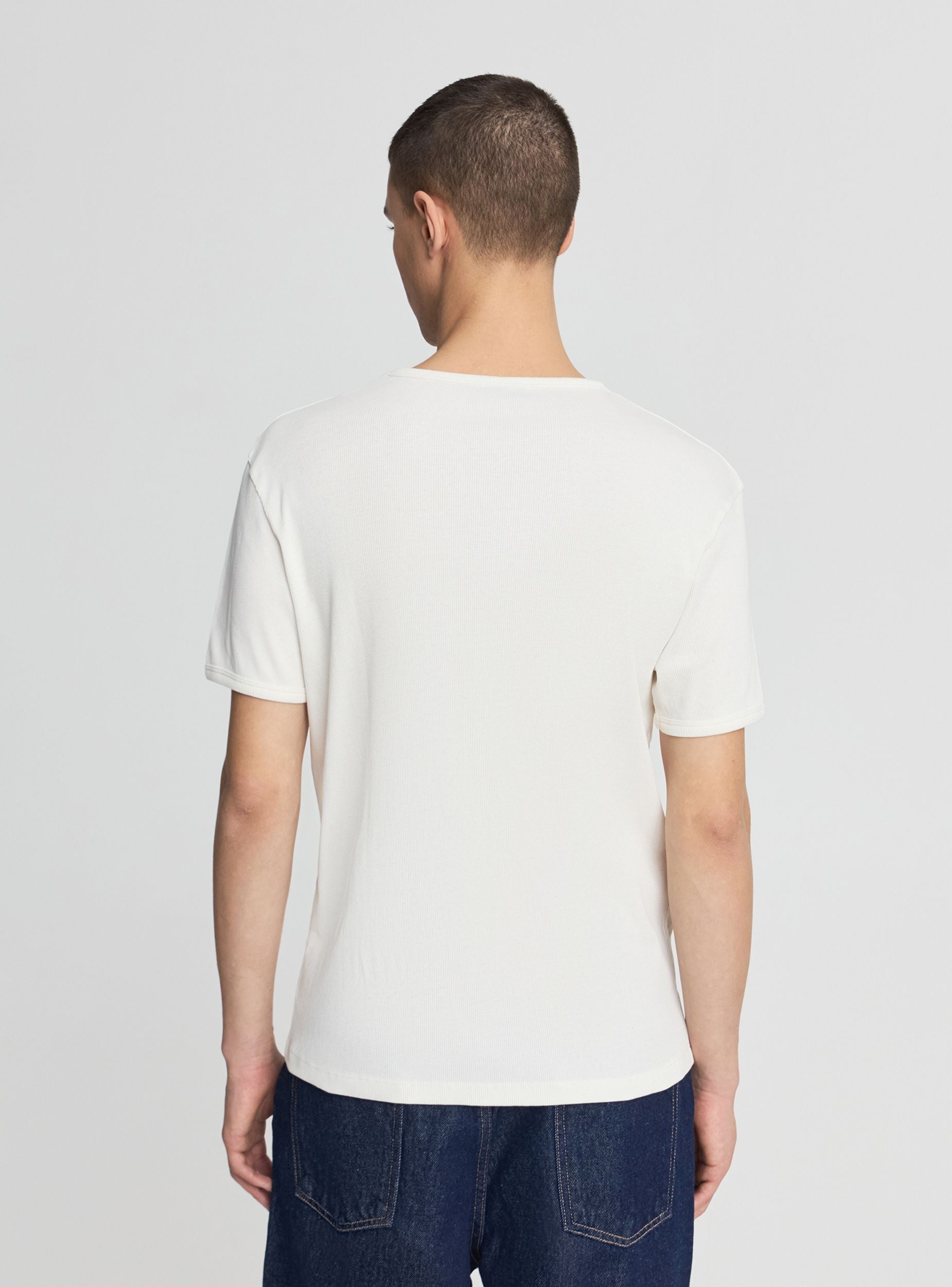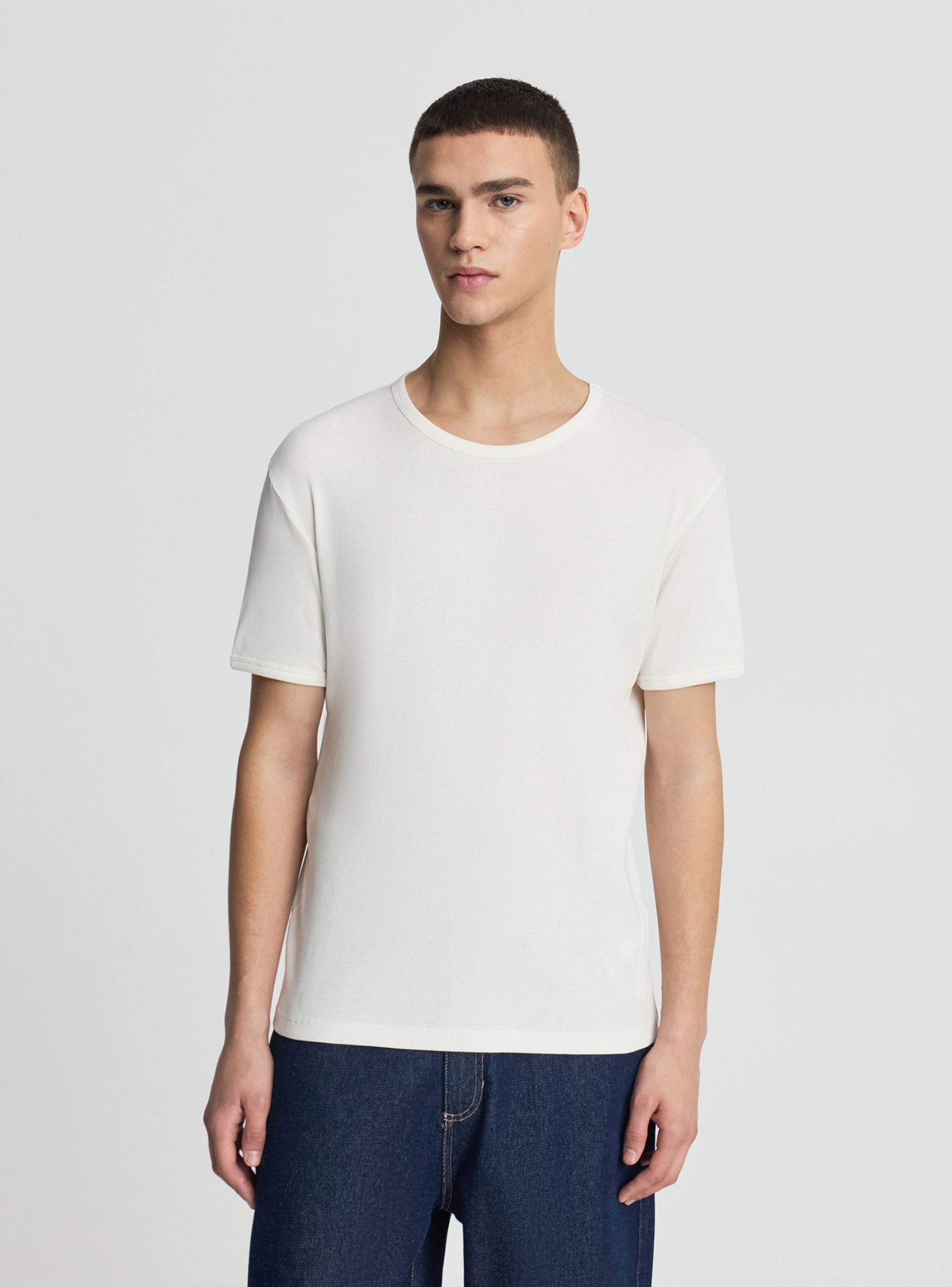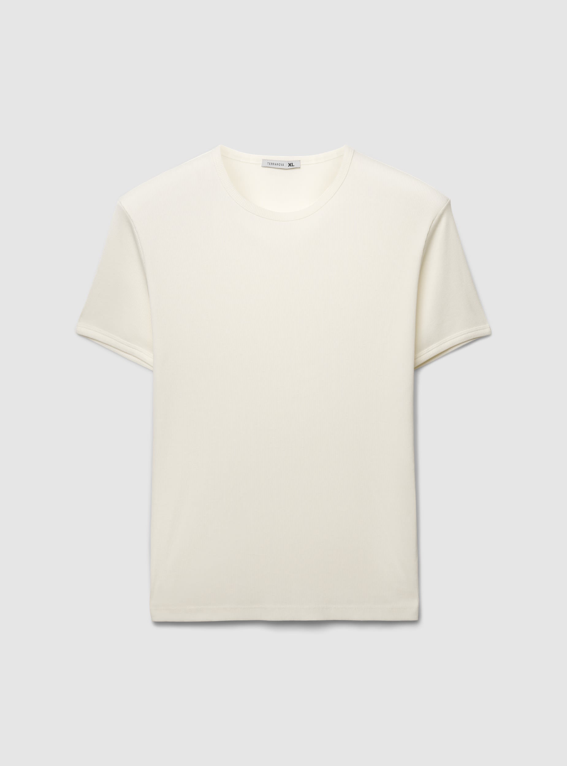 Muška majica kratkih rukava sa okruglim izrezom i rebrastim dizajnom, idealna za svakodnevnu upotrebu. Uski kroj naglašava figuru i čini je savršenom ispod otvorenih košulja ili laganih jakni. Jednobojni dizajn lako se kombinuje, sa ravnim rubom i urednim završnim detaljima. Nosite je sa džinsom, činom ili bermudama za ležeran, ali pažljivo osmišljen izgled u svakoj prilici.Detalji