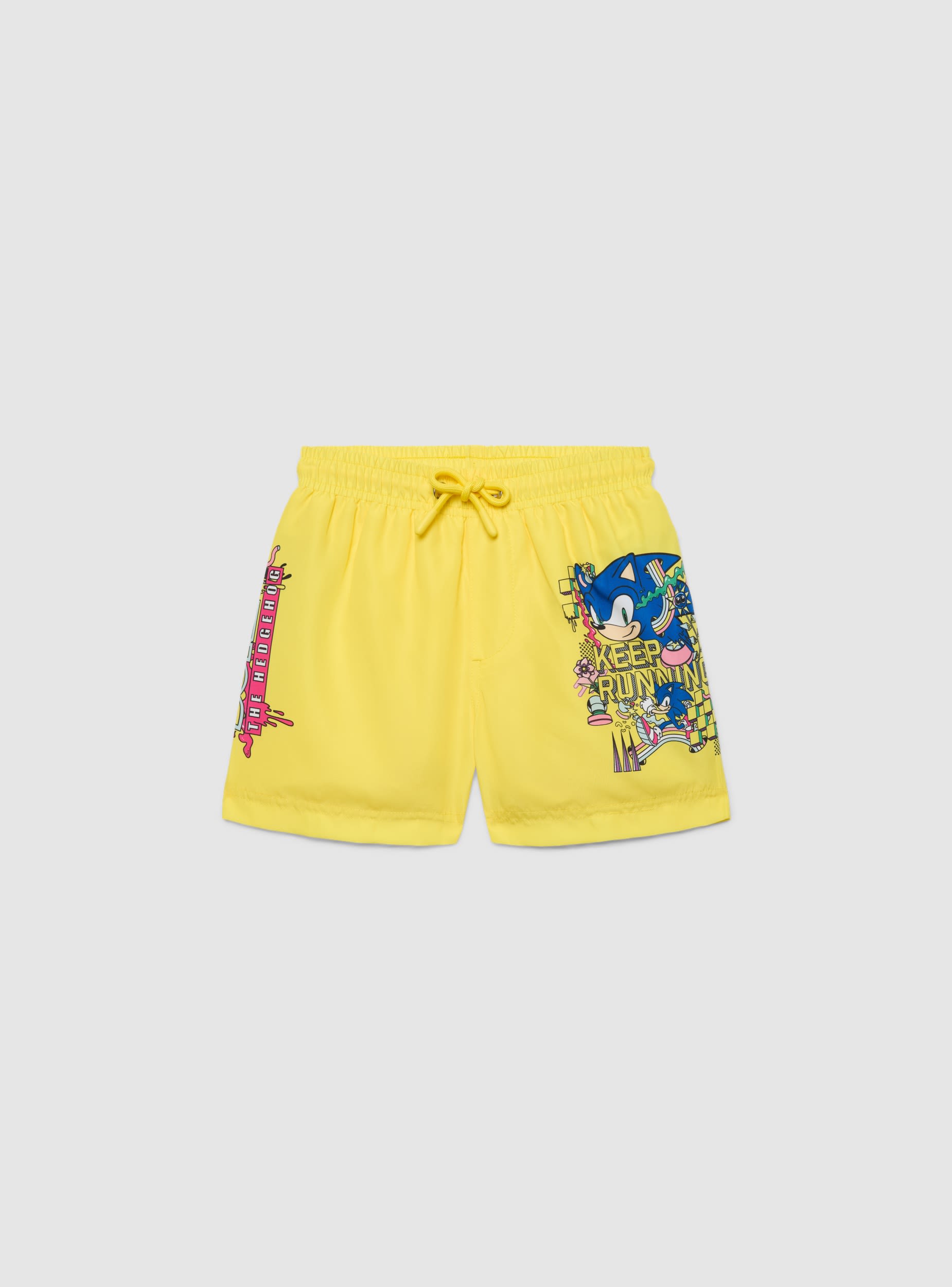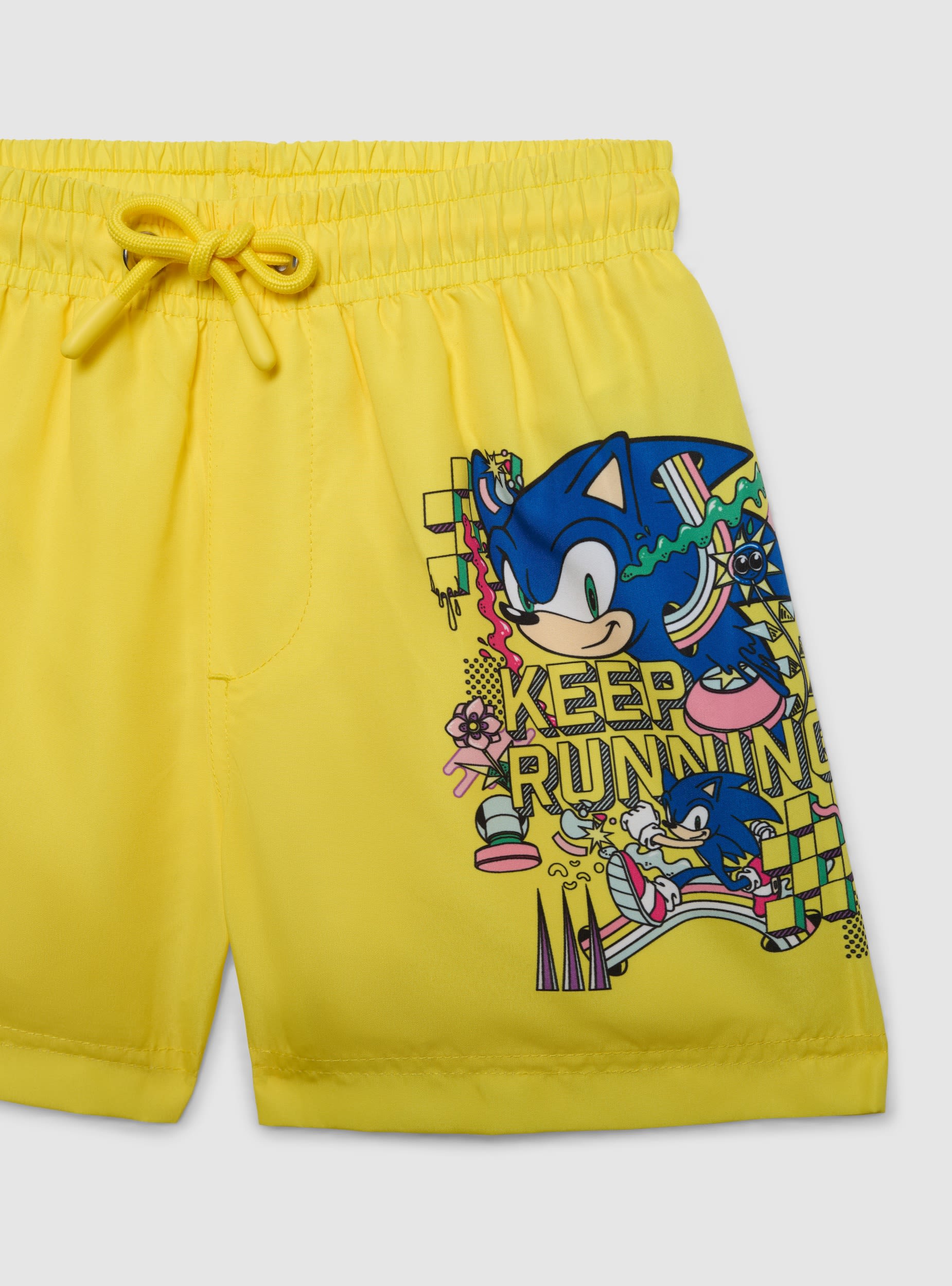 Dečiji bokser sa štampom Sonika i natpisima, idealan za bazen i dane na moru. Model sa elastičnim pojasom i podesivim vezicama za udobno pristajanje tokom igre. Kratka linija sa obrubljenim ivicama i grafikom pozicioniranom sprijeda, lako se kombinuje sa majicama bez rukava i letnjim majicama.Detalji